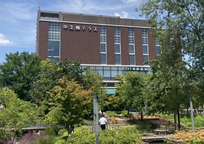 広場にあるビル「中之郷テラス」には、人気カフェチェーン『タリーズコーヒー』や、中華料理店『南国酒家』もあります。