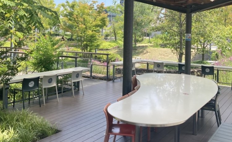 大きな屋根の下には、テーブルとイスを多めに配置されており、気軽にくつろげます。