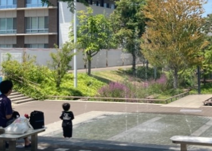 TVでおなじみ!夏は水遊びキッズにも大人気の虎渓用水広場のバリアフリー噴水