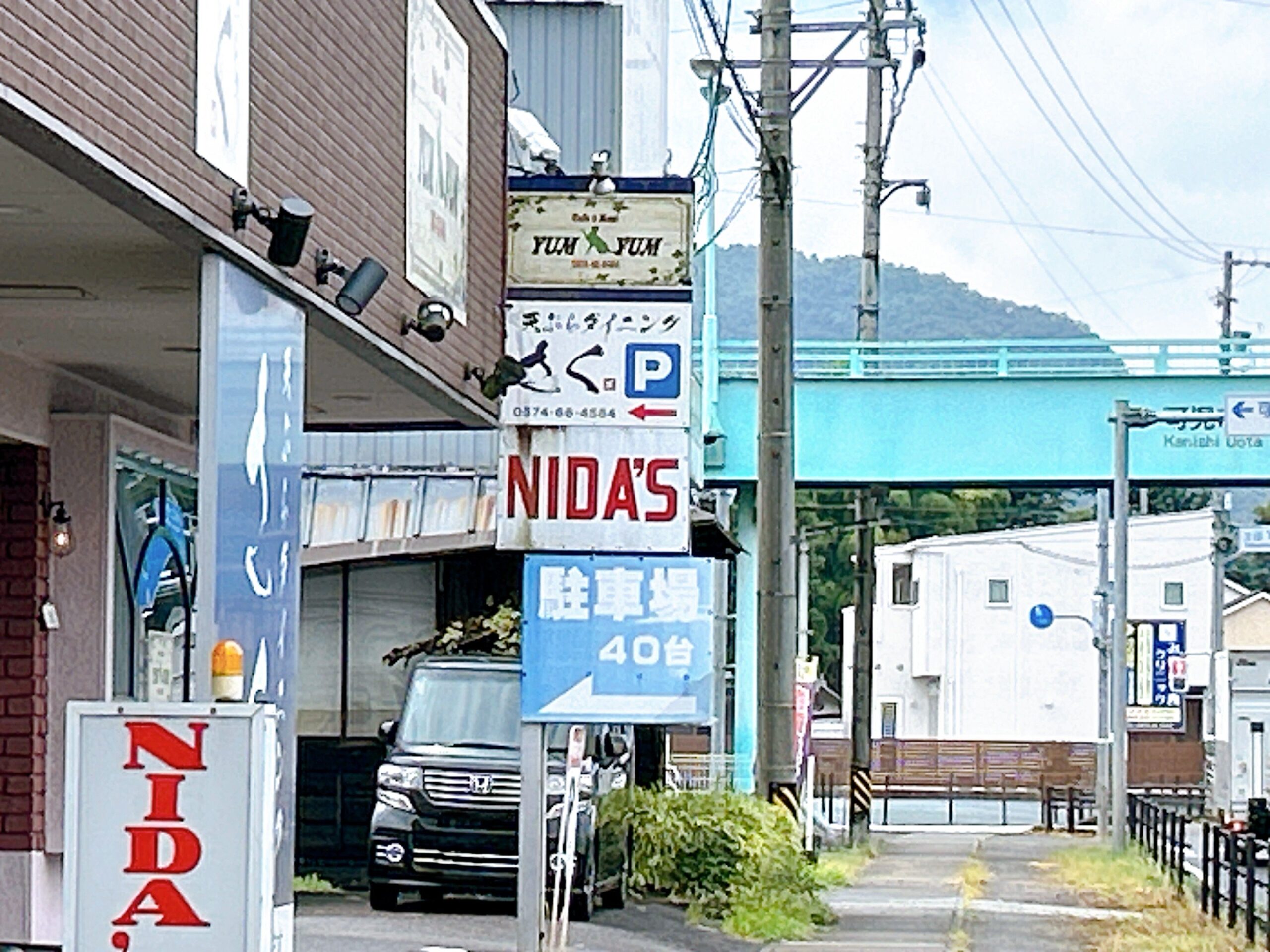 さくさんの正面、県道84号線は比較的交通量も多い道路のようです。