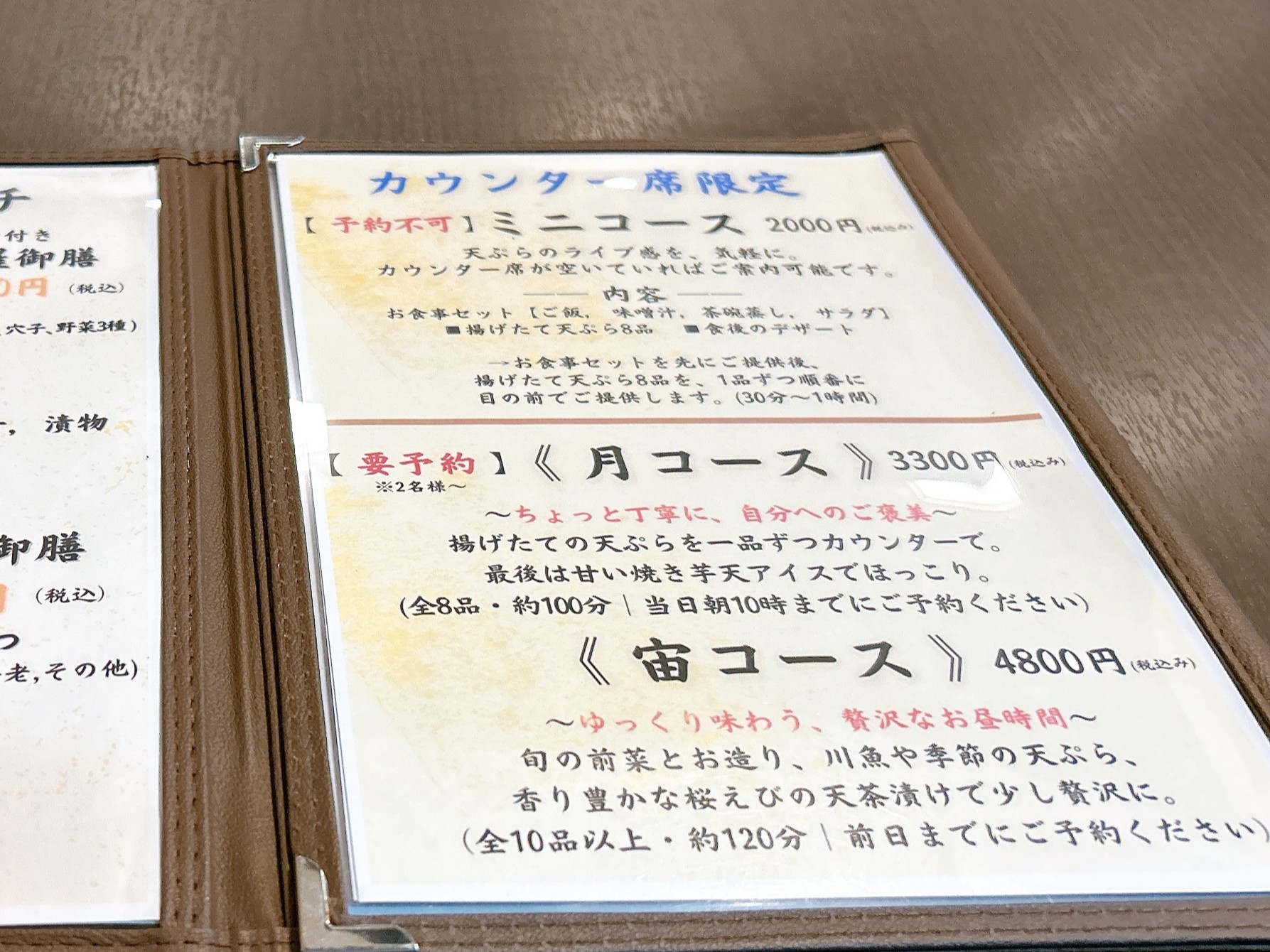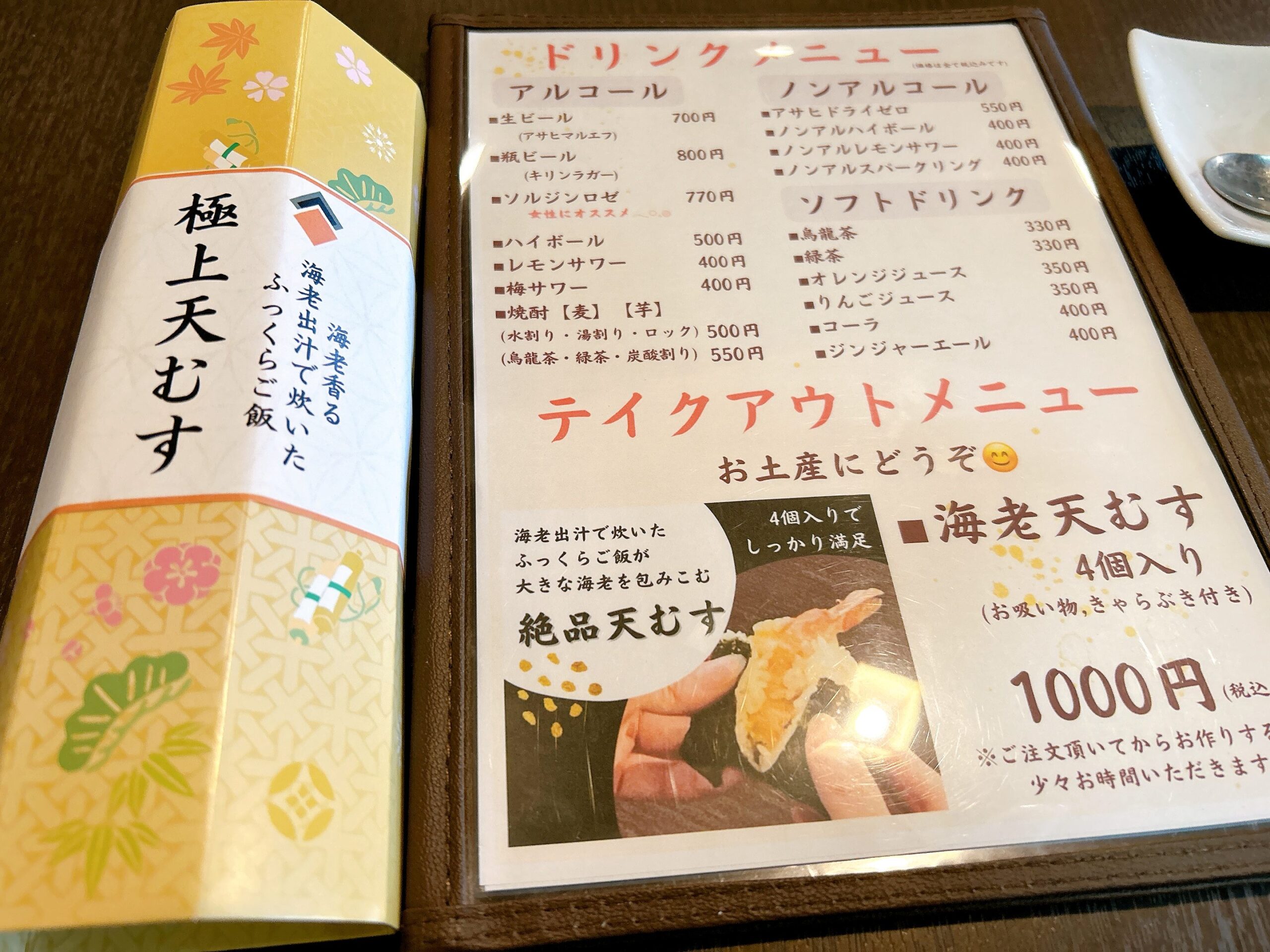 もちろんどれも天ぷらがメインですが、野菜天と海鮮天のどちらが多めか選べたり、副菜がいくつもつくもの、天むす、天丼など、バリエーション豊かな感じがします。