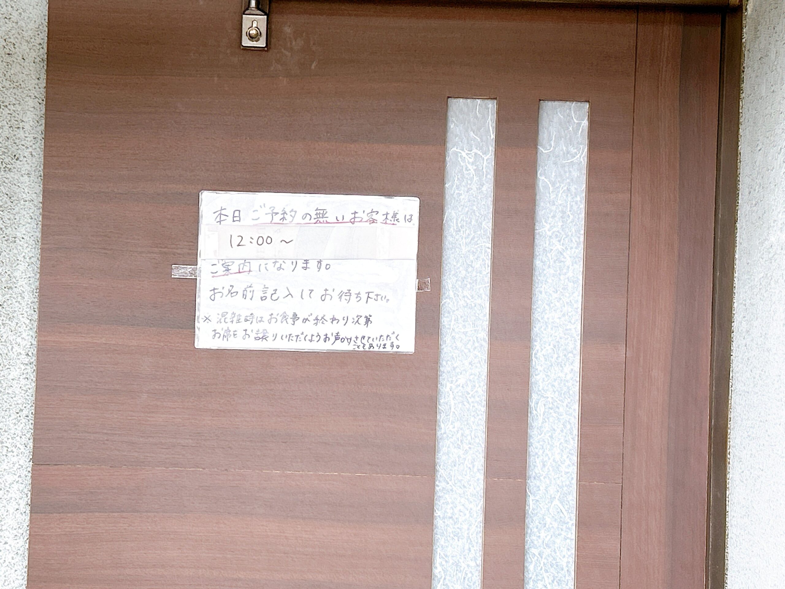予約なしの場合は12:00からの入店となるため、記名して案内を待ちます。車で待つ場合は、スタッフの方に連絡先を伝えておくと、ご連絡くださるようです。