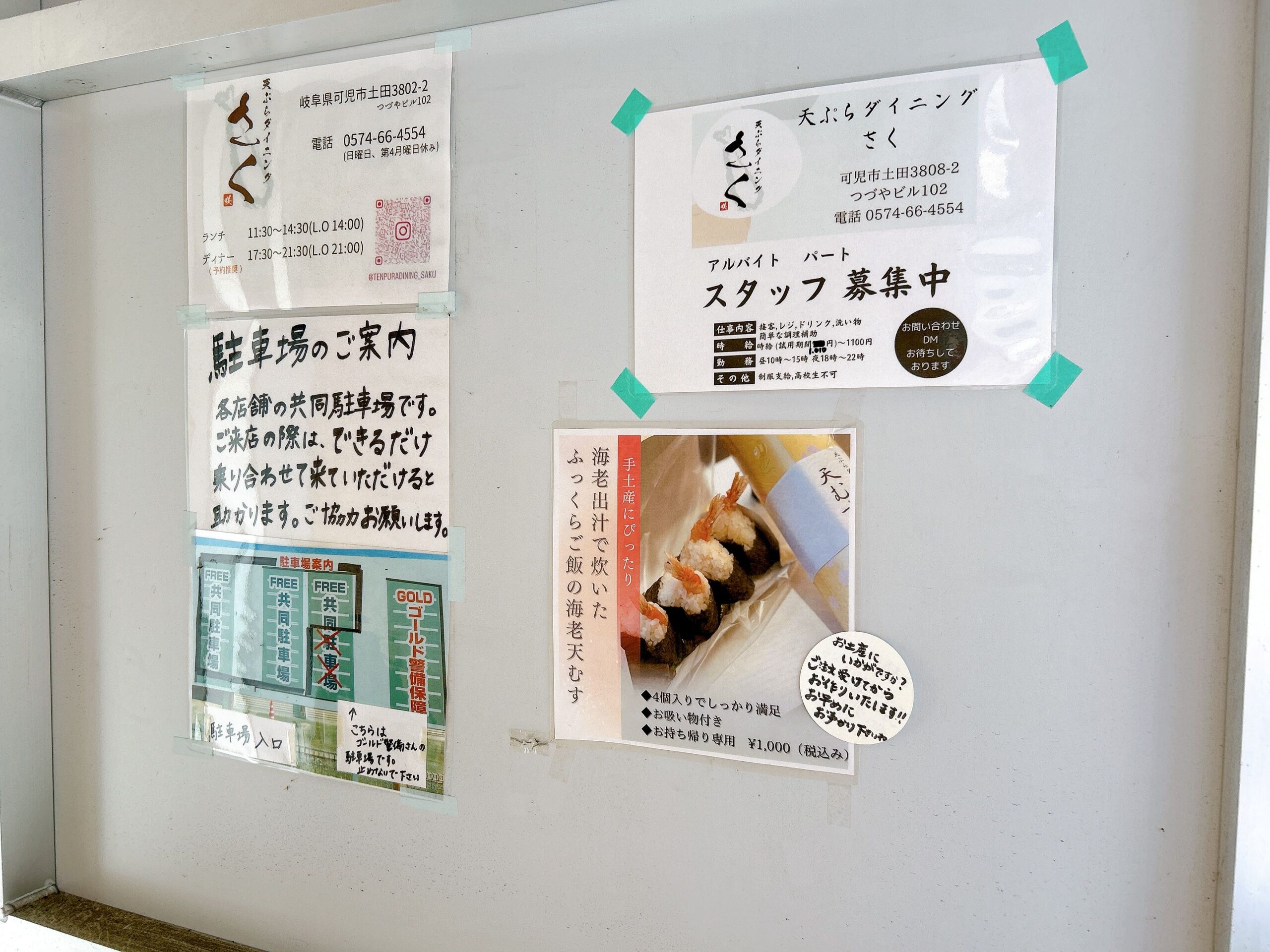可児市土田。美濃加茂市や坂祝町との境界線も近い市内北西部、岐阜県道84号線沿いに建つビルの1Fにある「天ぷらダイニング さく(テンプラダイニング サク)」さん。
