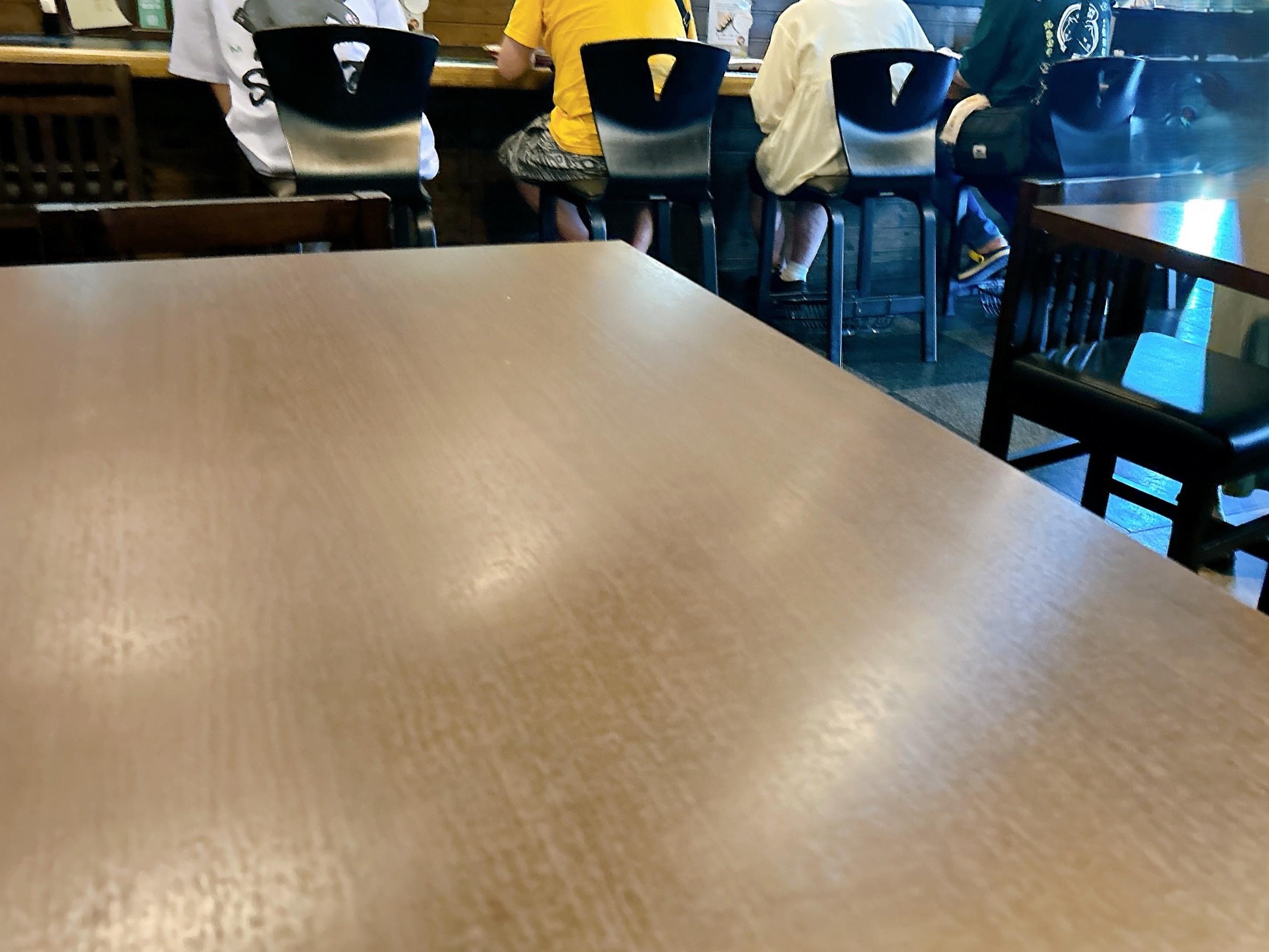 店内は右手にカウンター席が6席程度、左手に2名掛けのテーブル席が3卓、テーブル席の奥には2畳程度の座敷にテーブルが1卓あります。