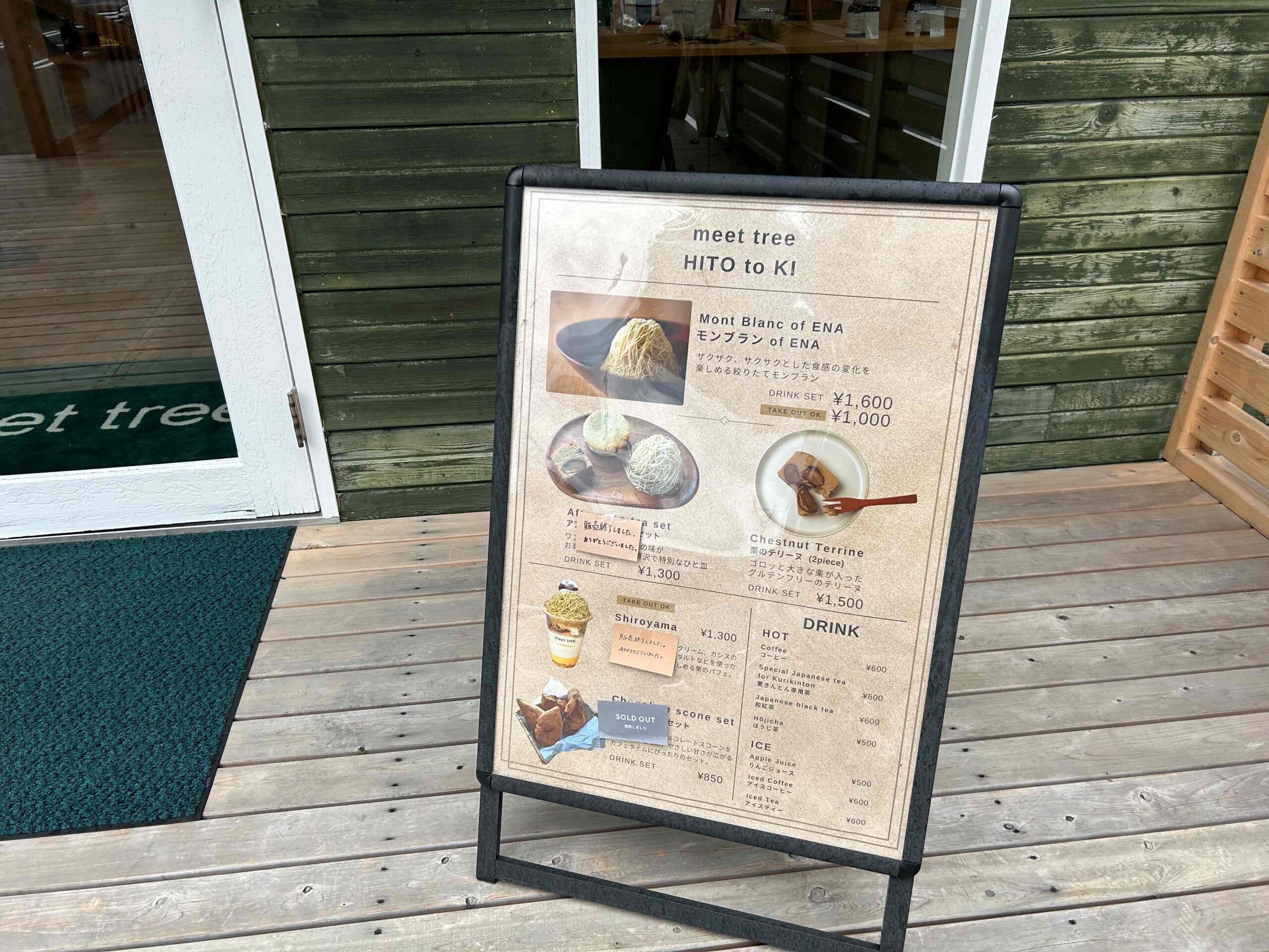 meet tree HITO to KIさんでは、モンブランや栗のテリーヌ、栗粉をトッピングしたソフトクリームなど、栗を使ったスイーツをいただくことができます。