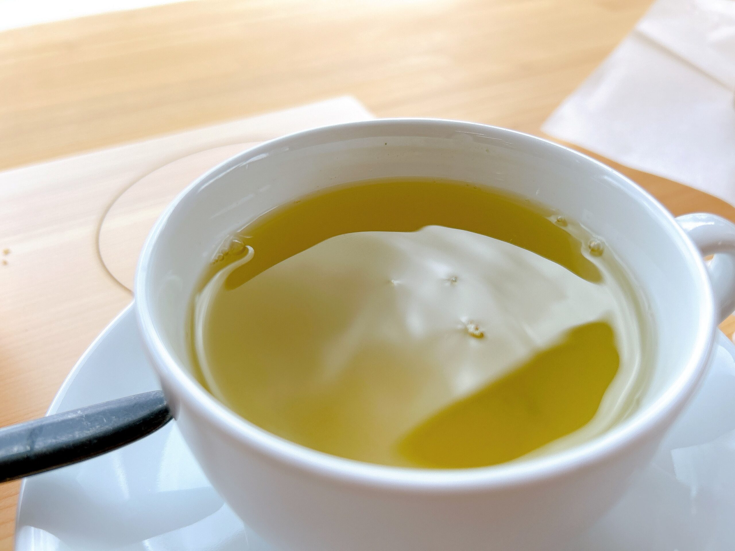 いただいてみると、すっきりと飲みやすい緑茶のなかに、抹茶の風味をしっかり感じられました。ティーバッグでの提供なので、好みの濃さにできるのもうれしいですね。