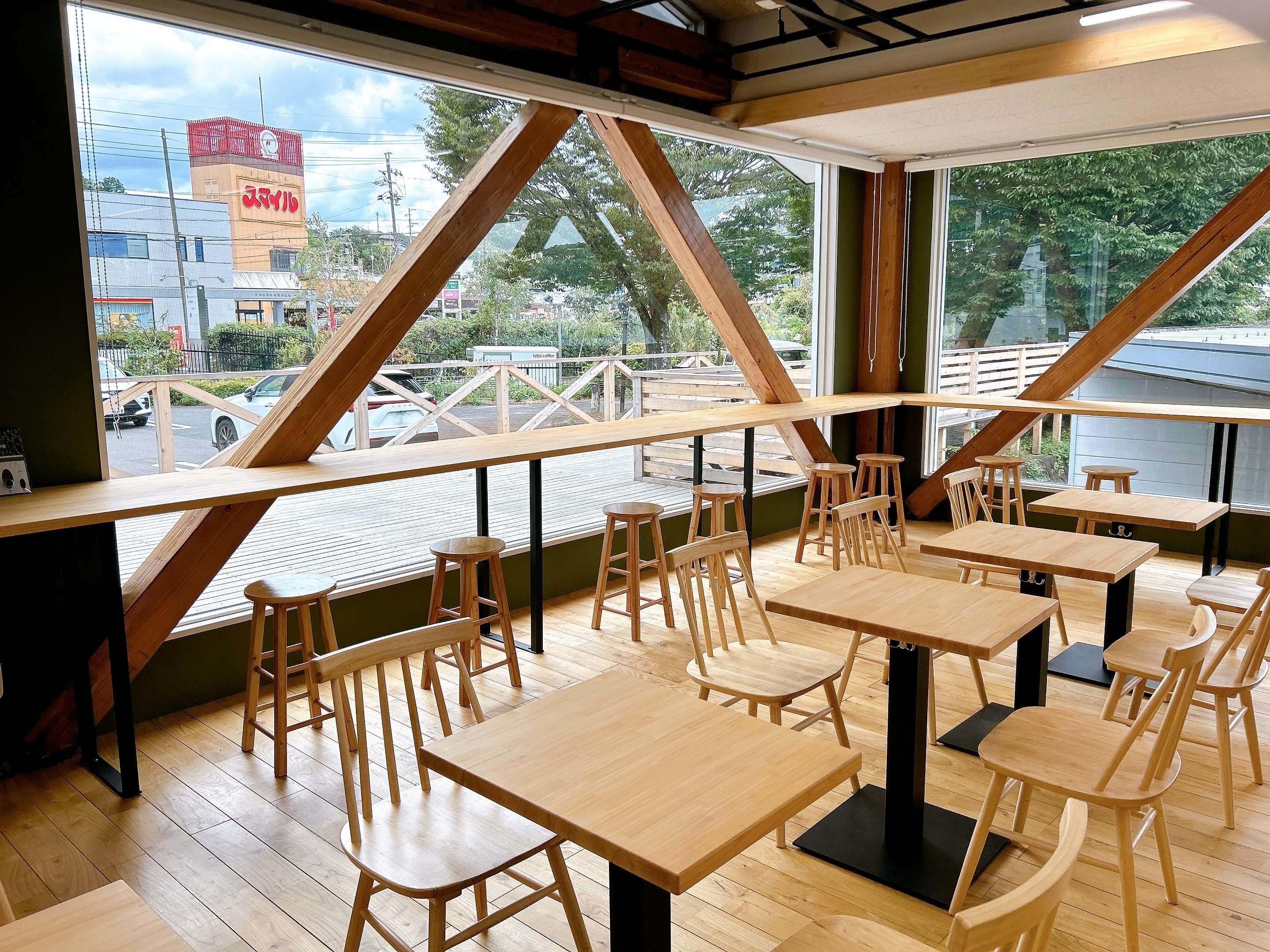 カフェスペースは窓に面したL字のカウンター席、入口近くと店舗奥で雰囲気が違うテーブル席は、用途に合わせて使い分けできそうです。
