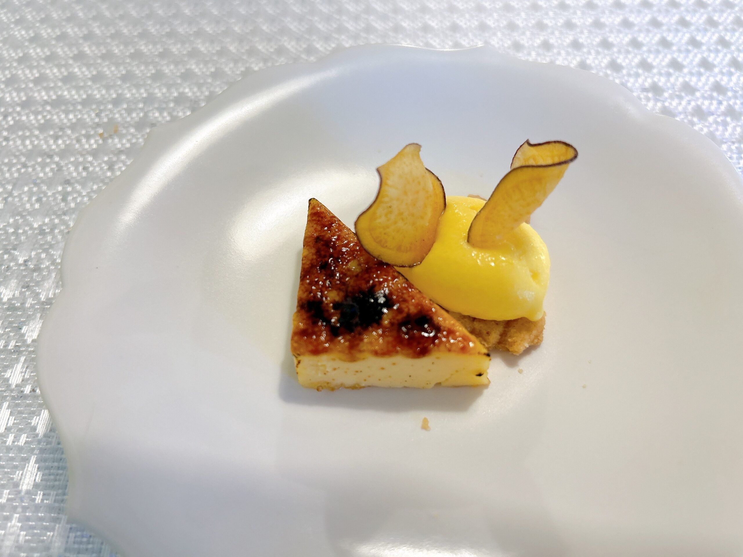 濃厚なさつまいものブリュレに、さわやかでシャーベットのようなオレンジのアイスさつまいものチップもトッピングされていて、ワンプレートでいろいろな味と食感を楽しめます。