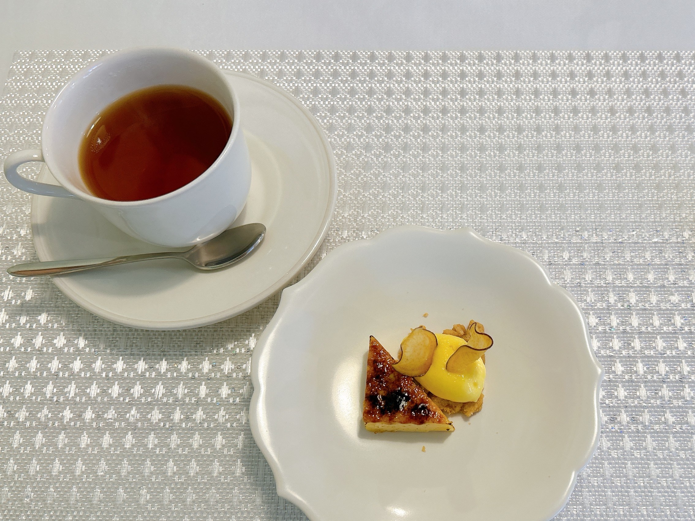 デザートは、さつまいものブリュレとアイス。紅茶といっしょにいただきました。