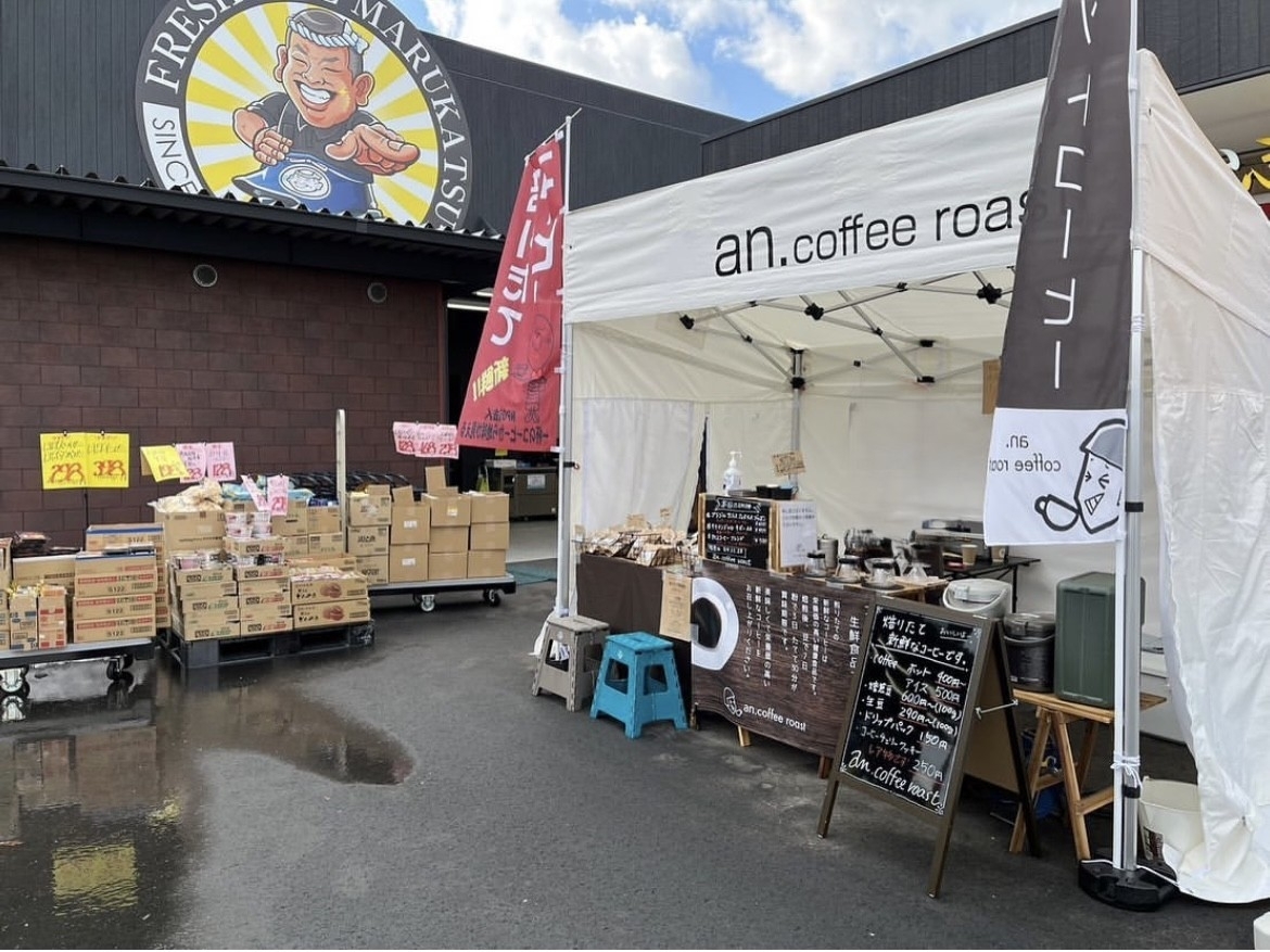 コーヒーに関わることだと、月に一度、食料品販売店の店舗前にテントで出店して、焙りたてコーヒーの販売をしています。