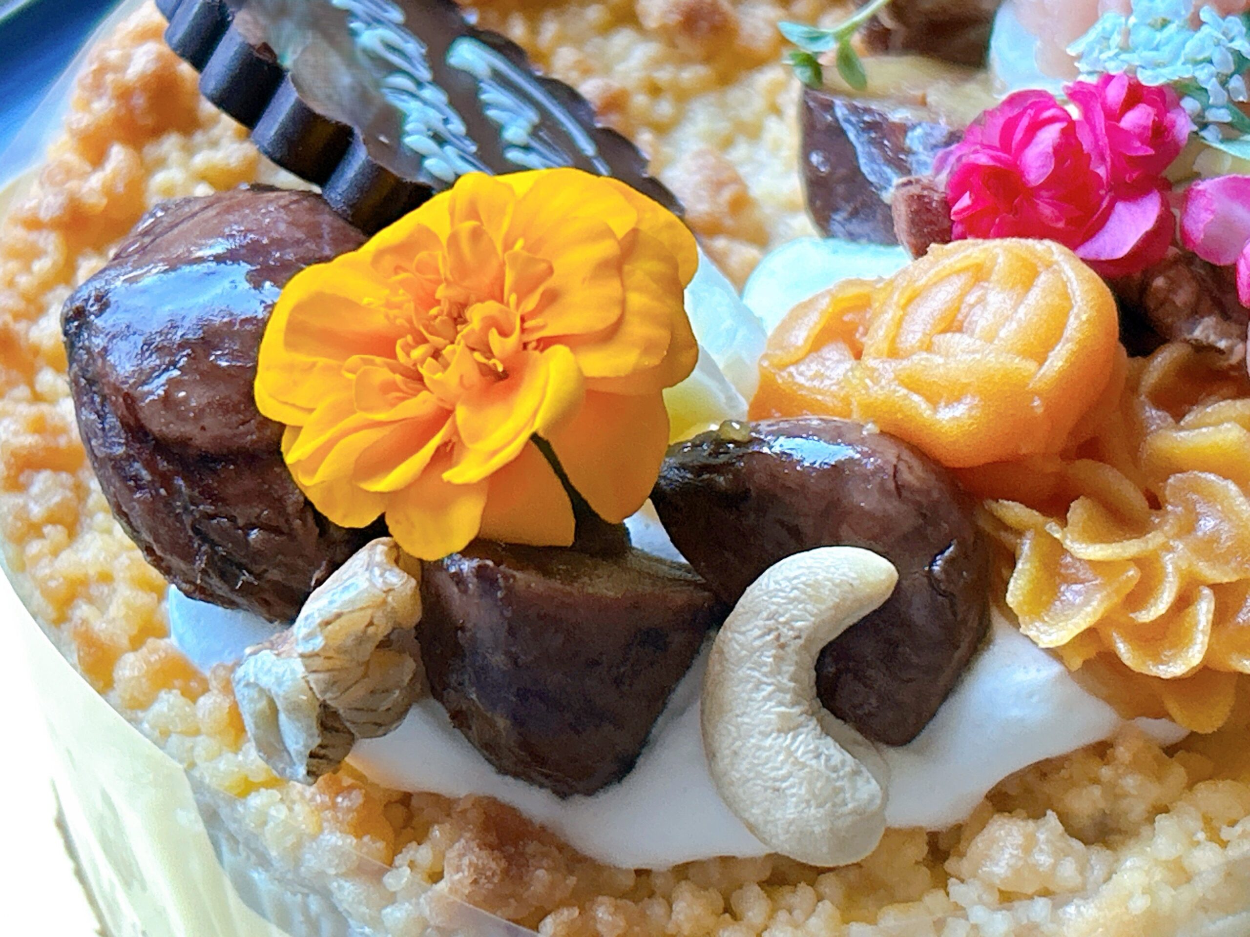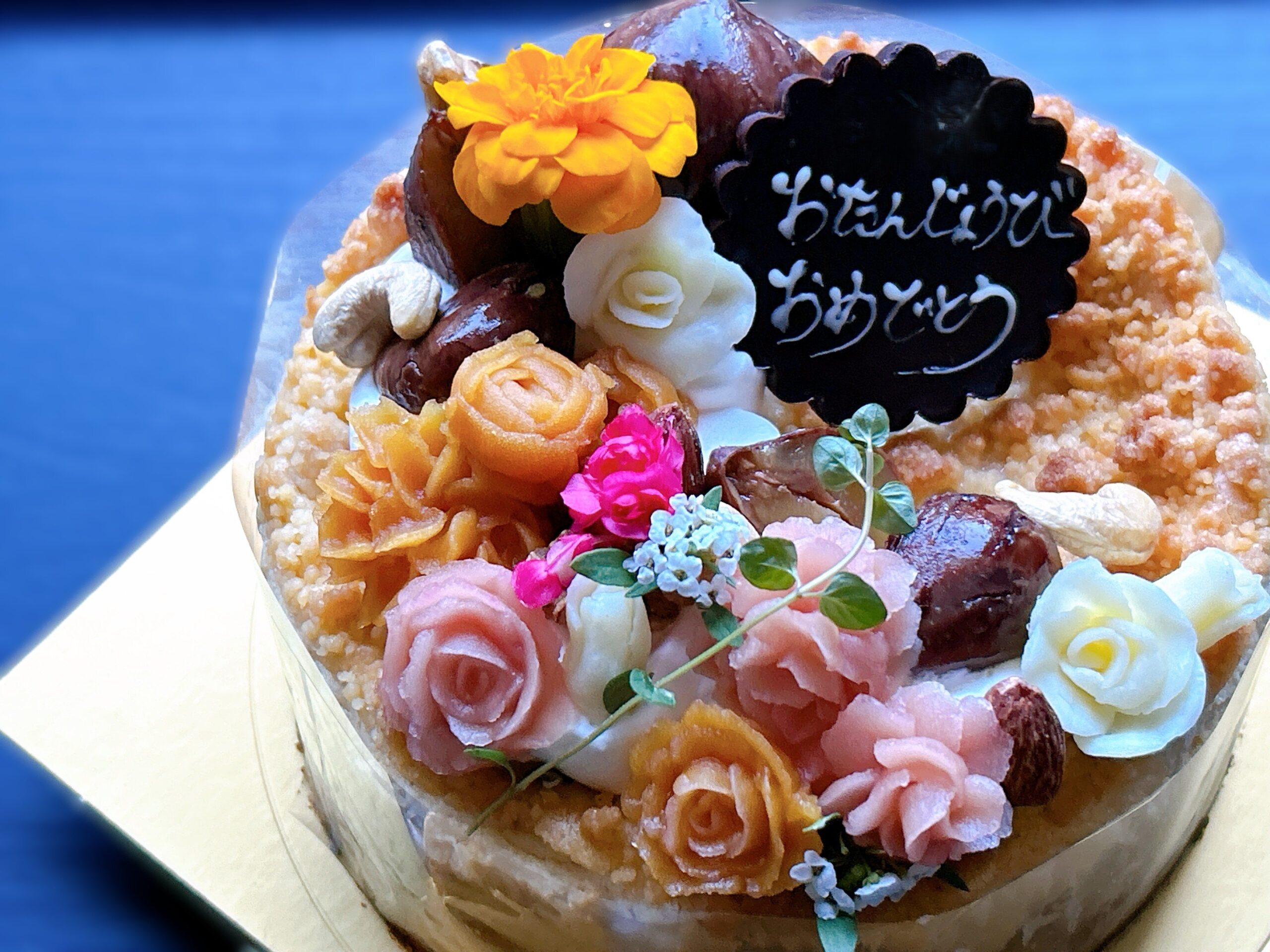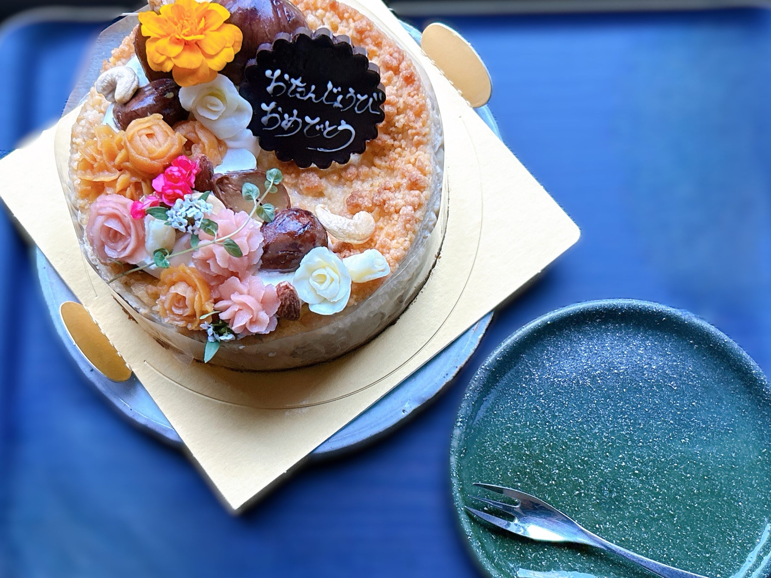 フルーツが使われたケーキが苦手で、普段はチーズケーキをいただくことが多いため、ベースは以前ナナフシギさんが作られていた栗のクランブルチーズケーキでお願いします。フルーツを使わないことで彩りなど華やかさに欠けるため、オプション加算にならない程度にデコレーションしてほしいです。