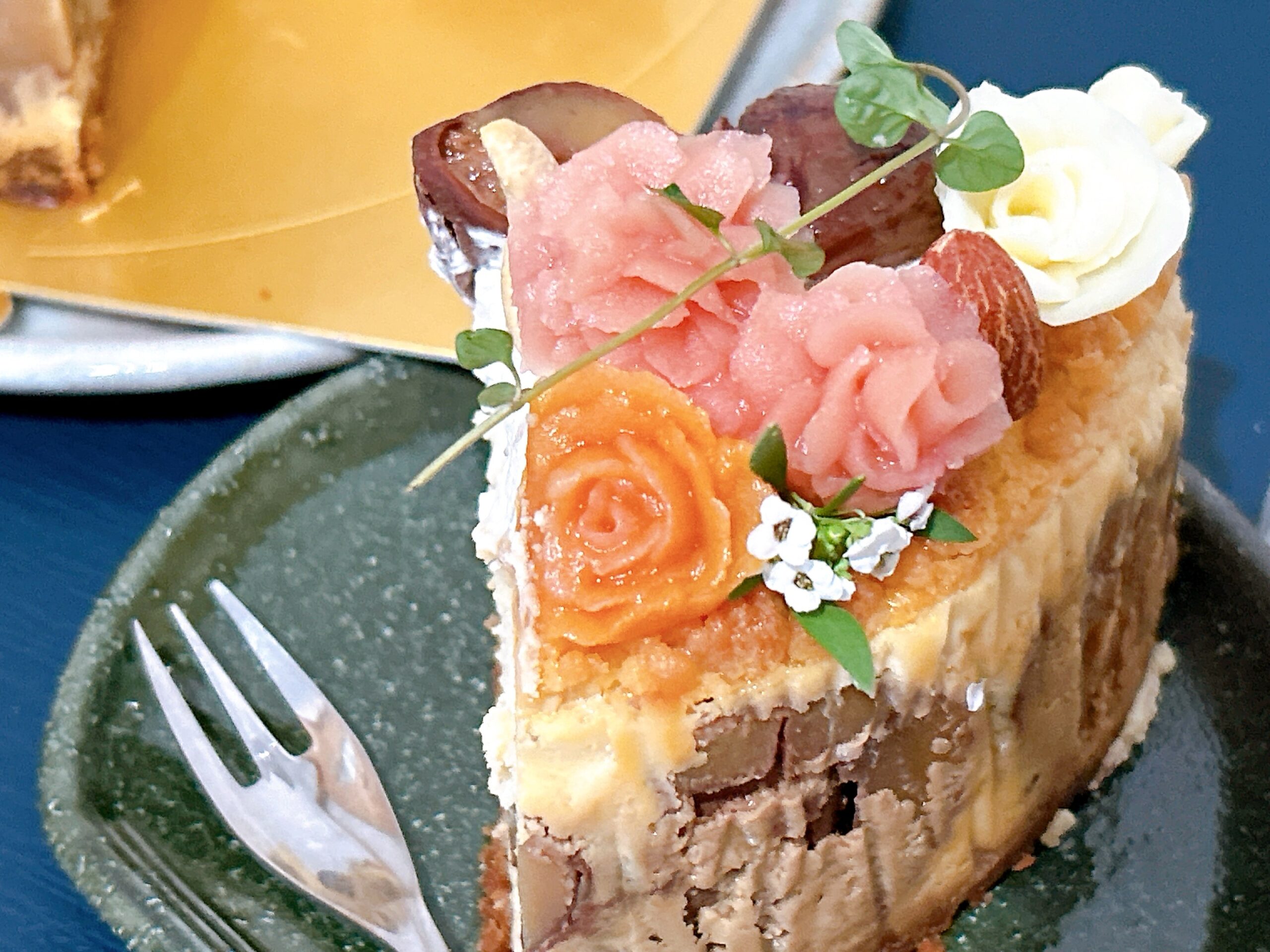 トッピングだけでなく、チーズケーキのなかにもゴロっとした栗がたっぷり。とても食べ応えがあります。