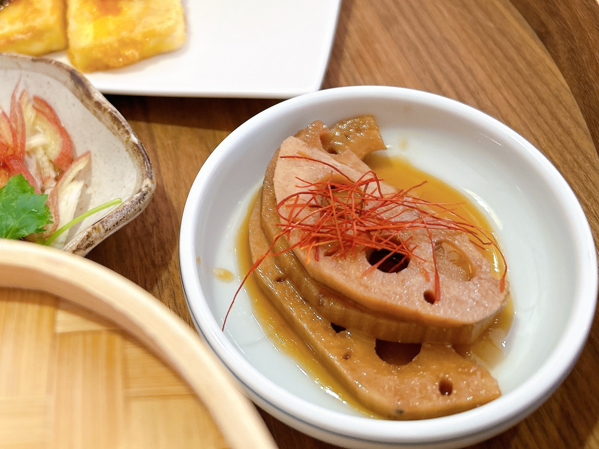 ヨングンチェという蓮根の酢漬けは、まろやかな酸味と蓮根の食感が楽しめます。