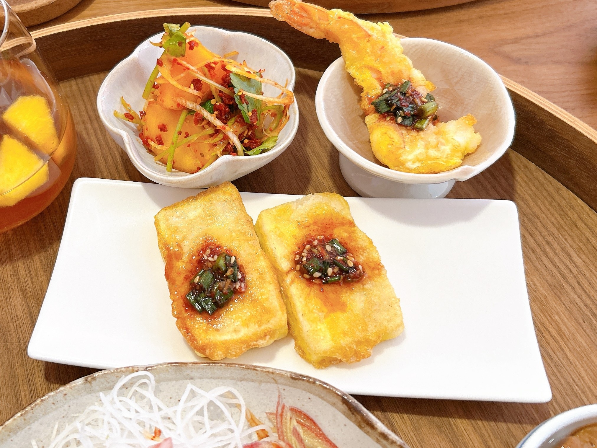 海老のジョンと豆腐のジョンは、同じジョンという料理なのに食材によって食感も味わいも違っていて、おもしろかったです。