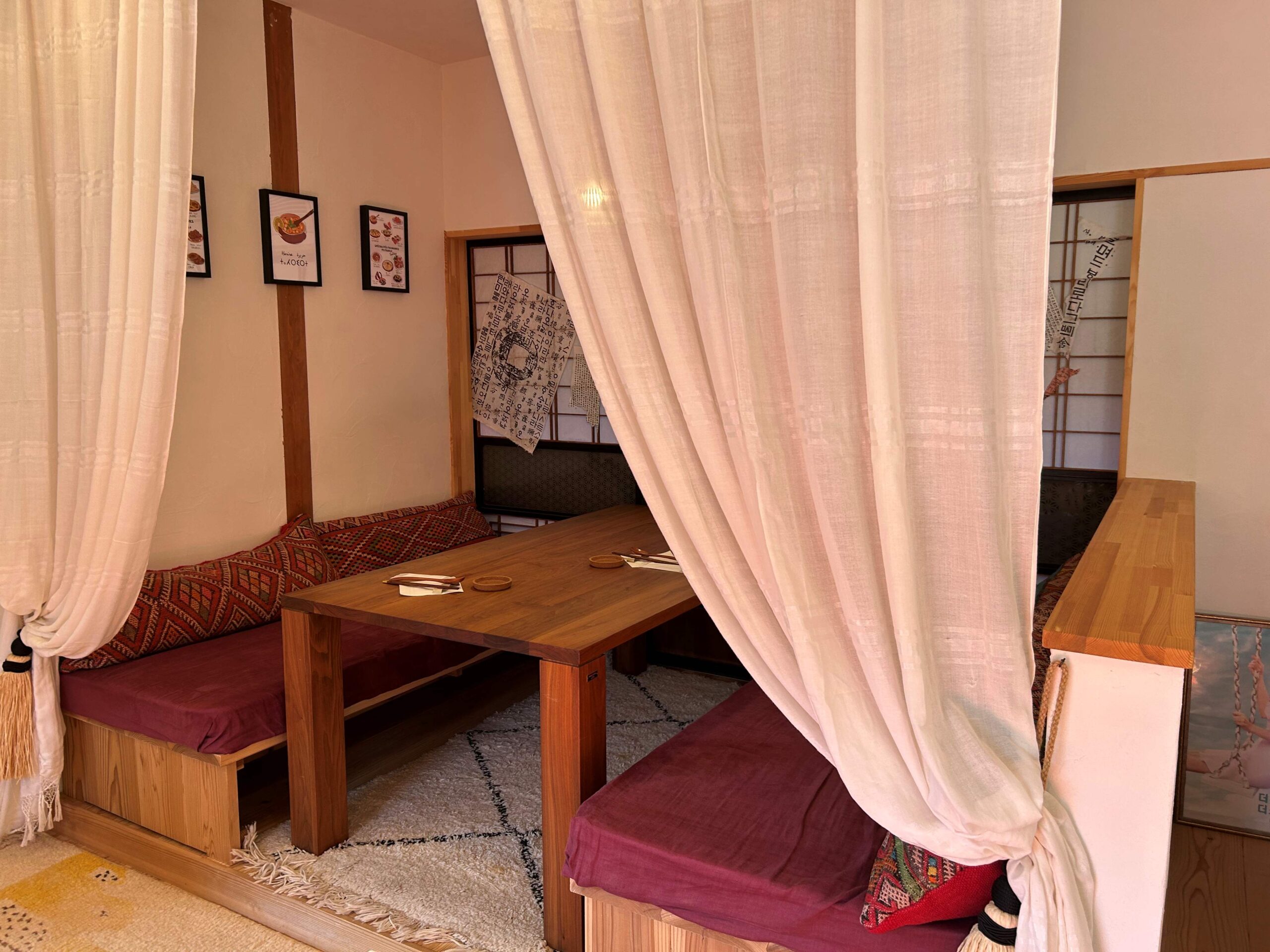 古民家を改装されたとのことですが、日本家屋の名残を残しつつ、アジア圏の異国を思わせる雰囲気が、懐かしさと非日常感を同時に感じさせてくれます。