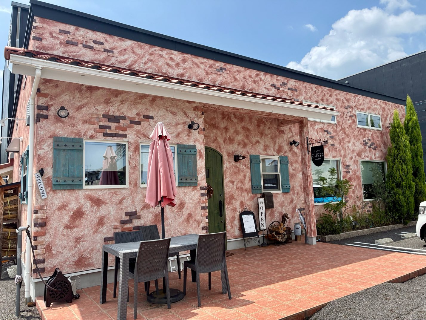 ヨーロッパの街角にあるような温もりある外観が魅力の一軒家レストラン「イタリア食堂シェフズ」さん。