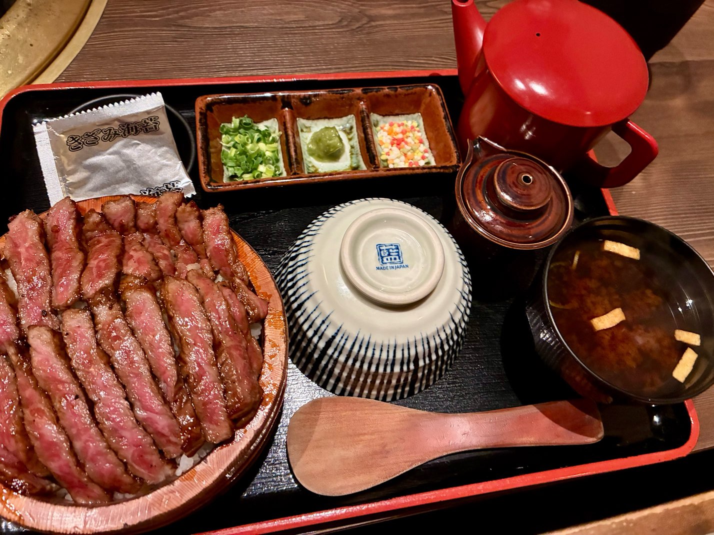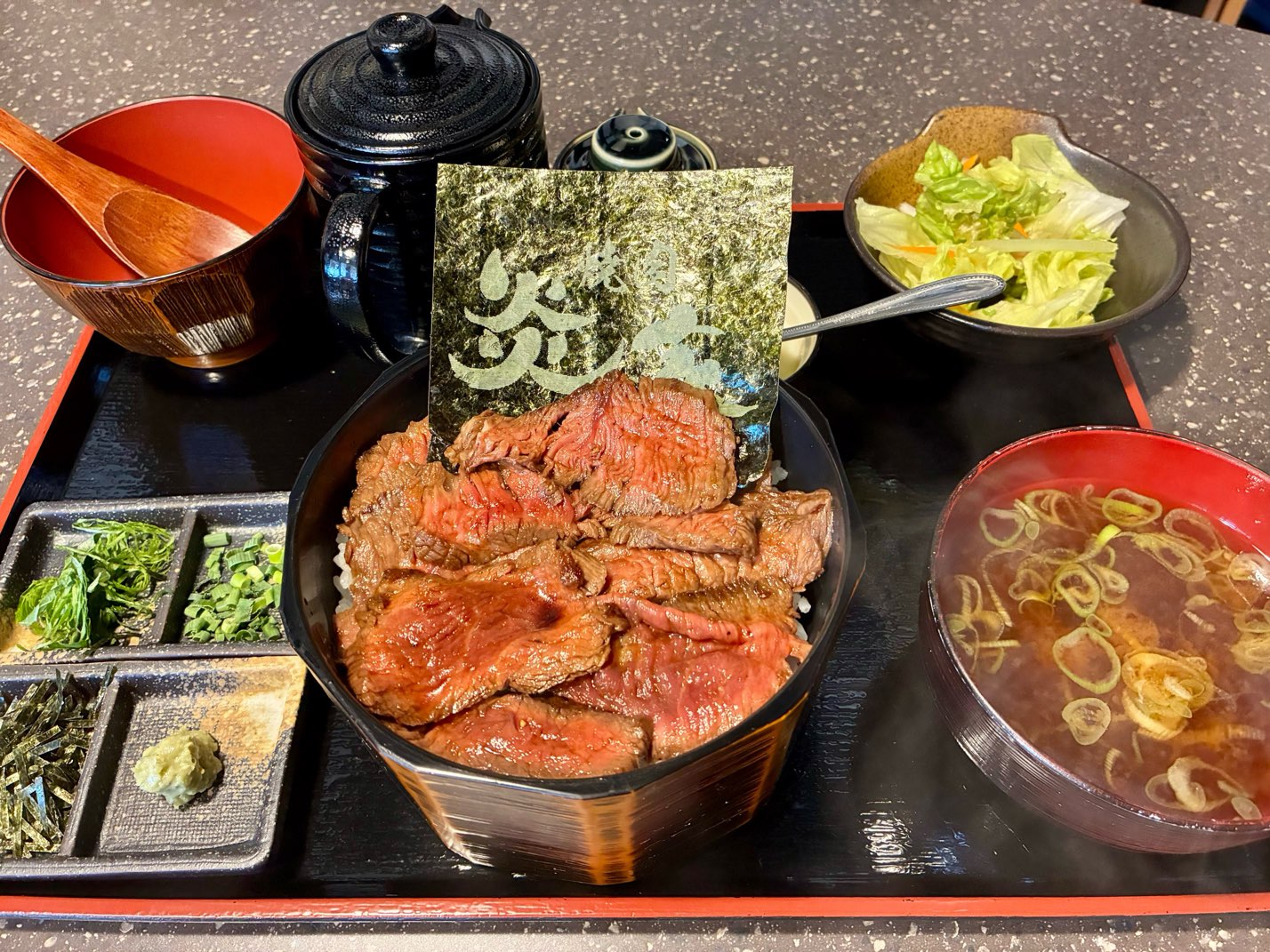 まずはタレの染みたお肉と白米をガッツリと楽しんで。後半は薬味と出汁を加えて、わさびの爽やかな辛味と出汁のまろやかな旨味が合わさった上品な味わいに。