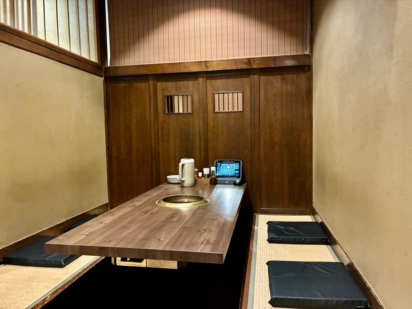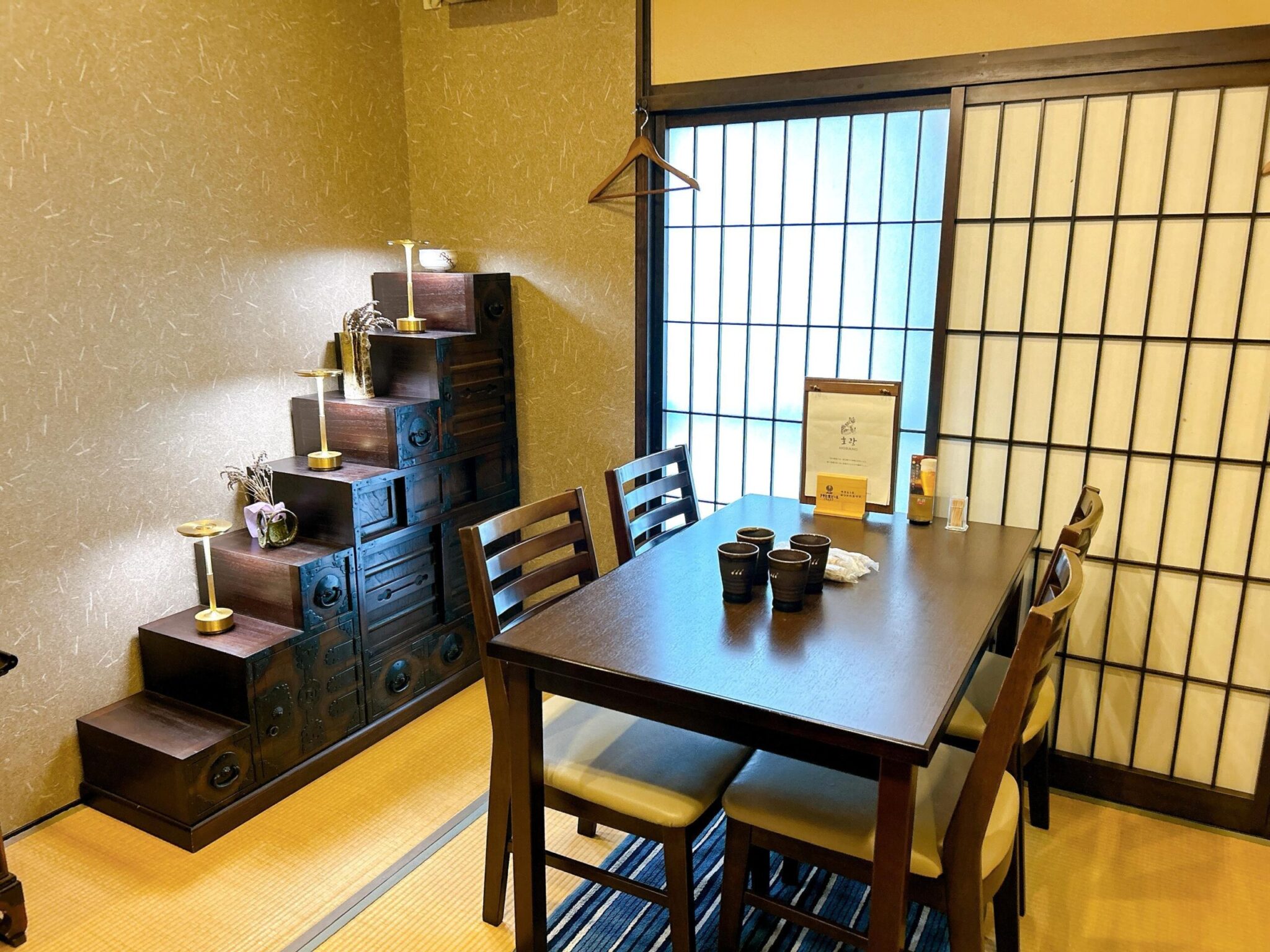 テーブル席と座敷はすだれで仕切られていて、開放感を残しつつ、個室感も感じられるスペースになっています。