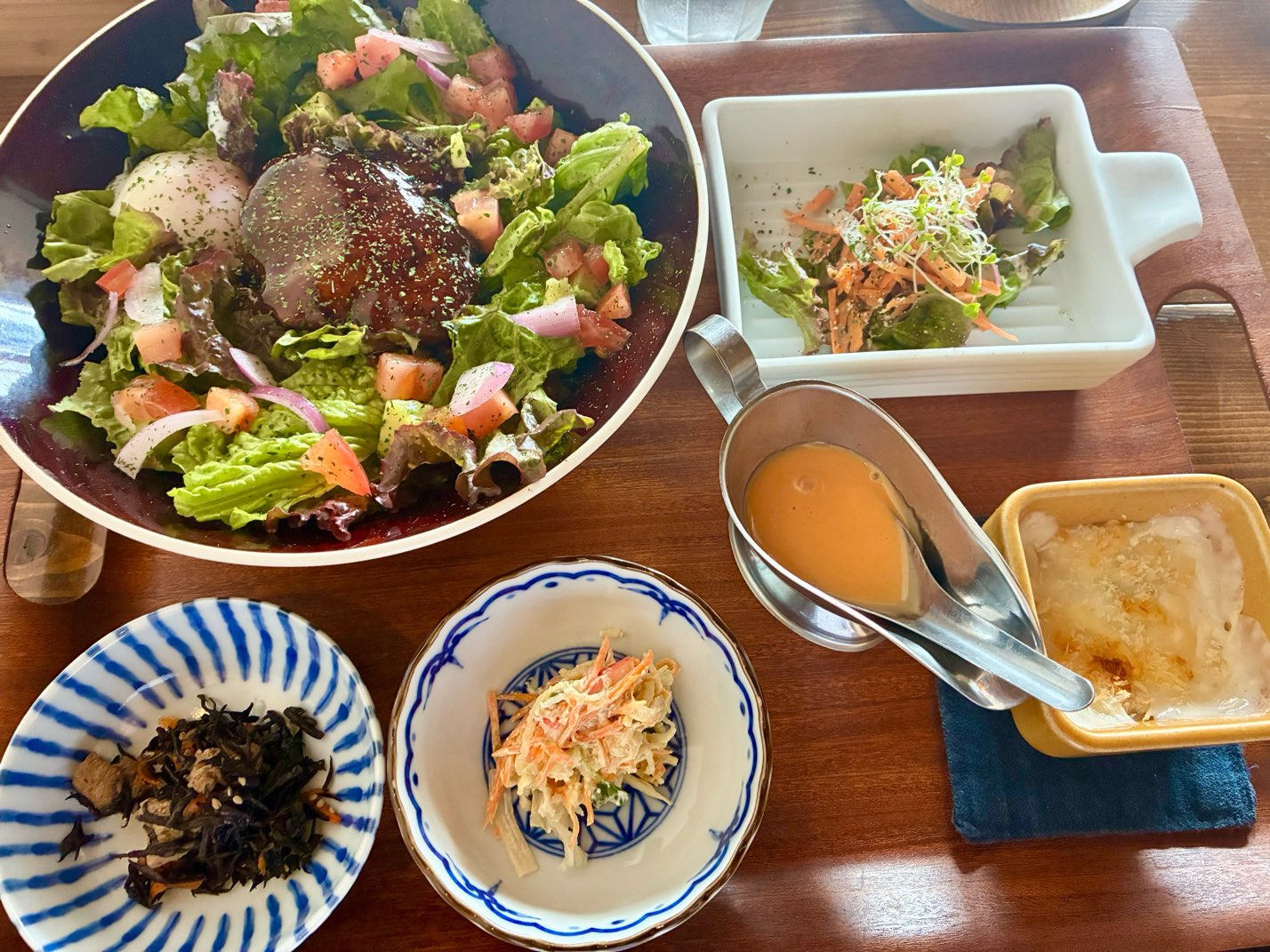 小鉢もついていて、ひじき煮、切り干し大根、サラダ、グラタンとボリューム満点。