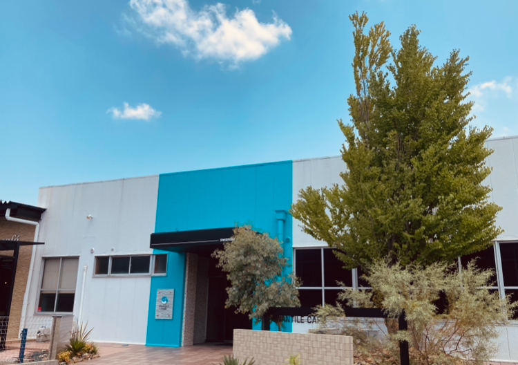 多治見インターから車で約10分、鮮やかなブルーが映える建物と看板が目印です。