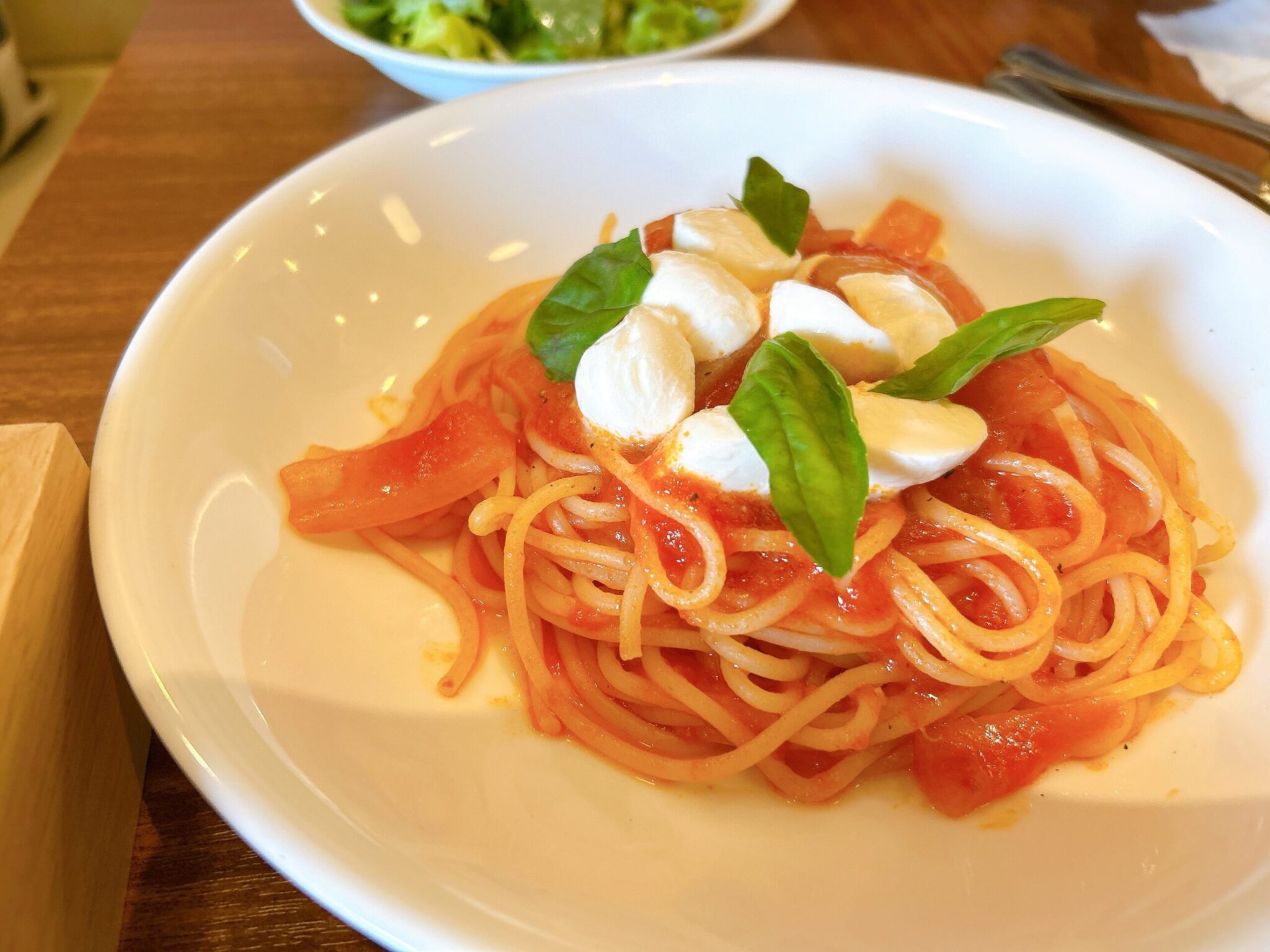 選べるパスタは、生スパゲティのもちもち食感に自信ありのトマトソース。