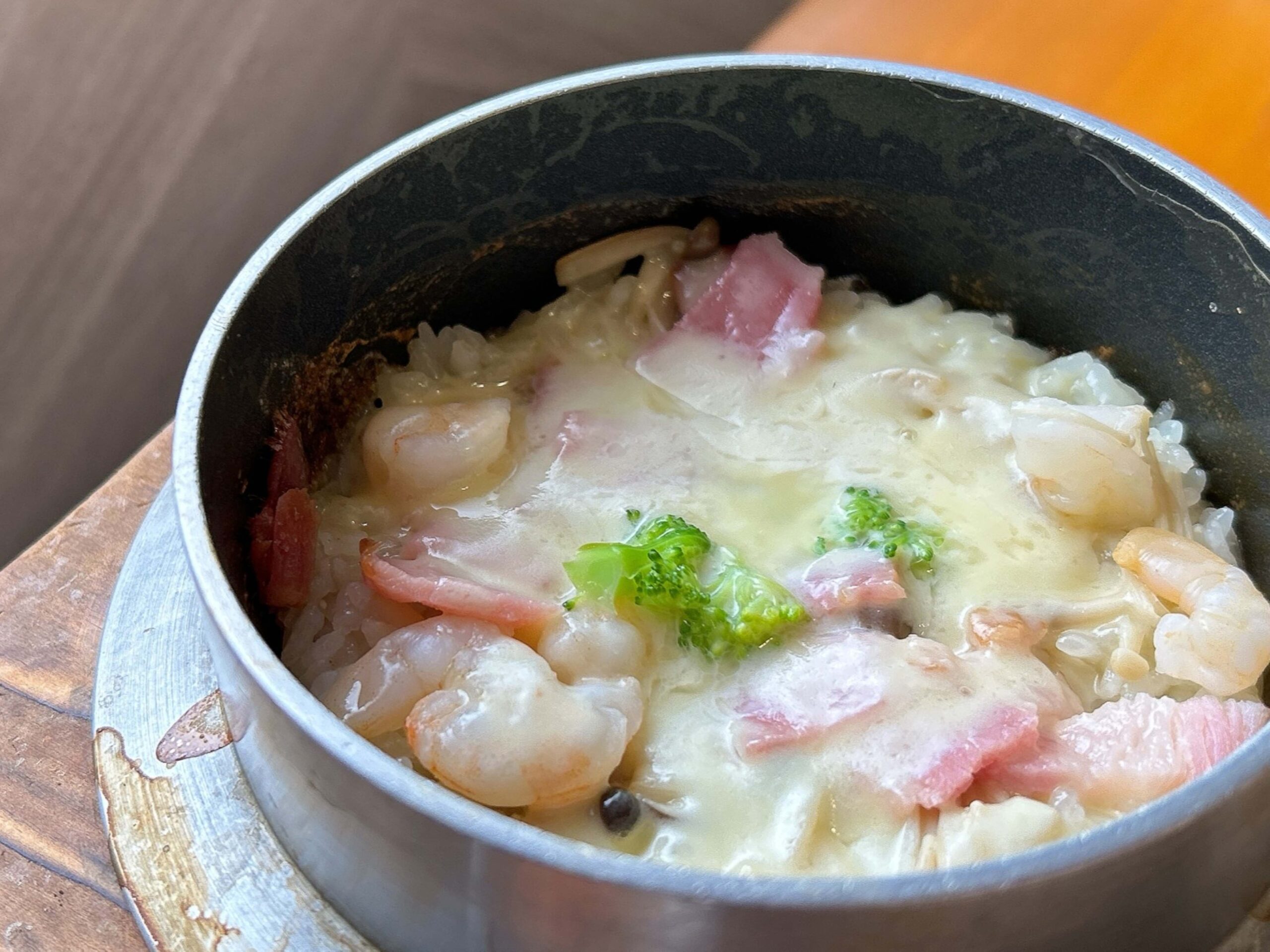 洋の釜めしは、ピラフのような感じをイメージしていたのですが、どちらかといえばドリアに近い感じがしました。