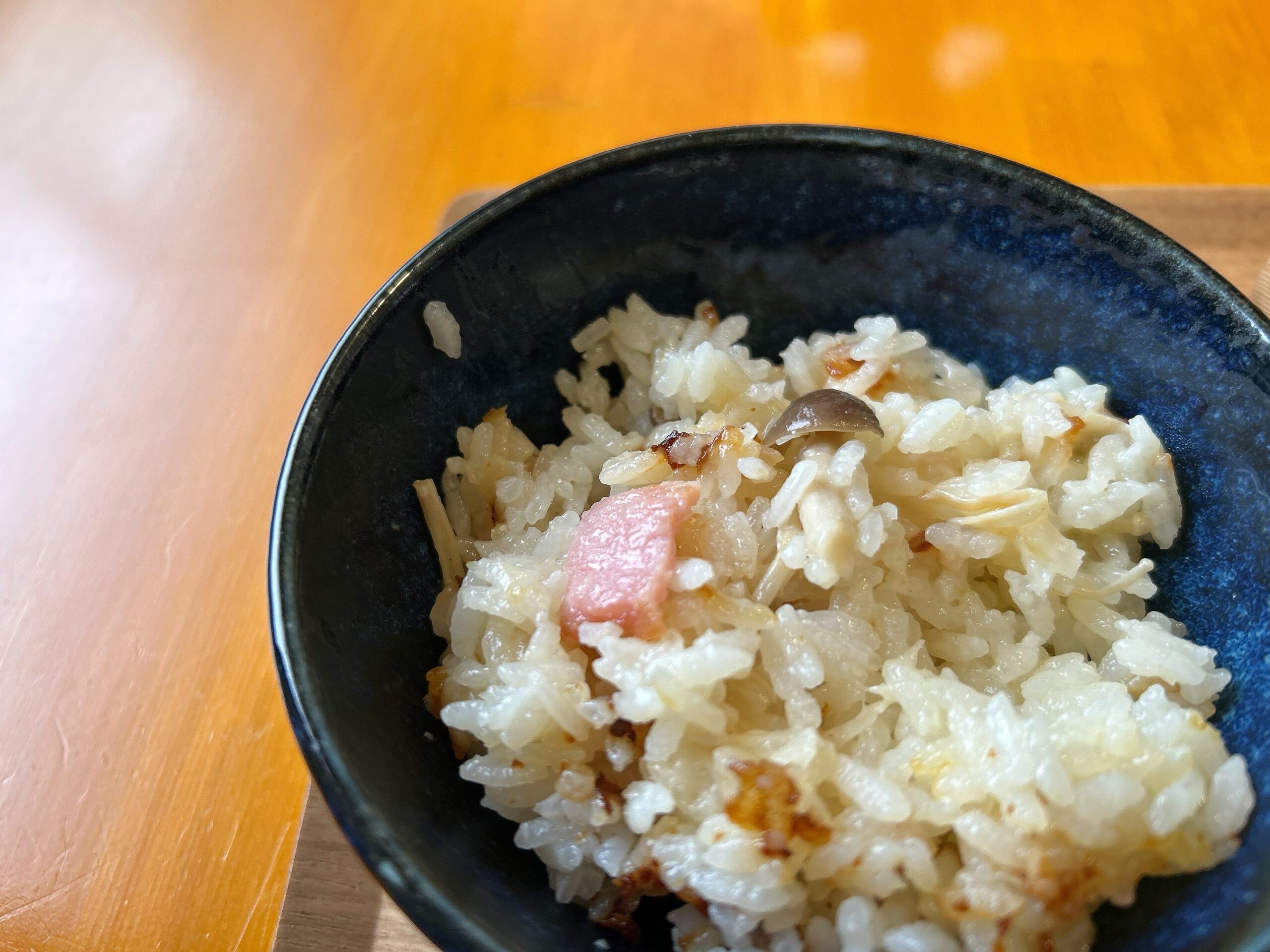 具材はえび、きのこ、ベーコン。それぞれ個性があり、いろいろな味と食感を楽しむことができるので、飽きることなく完食することができました。