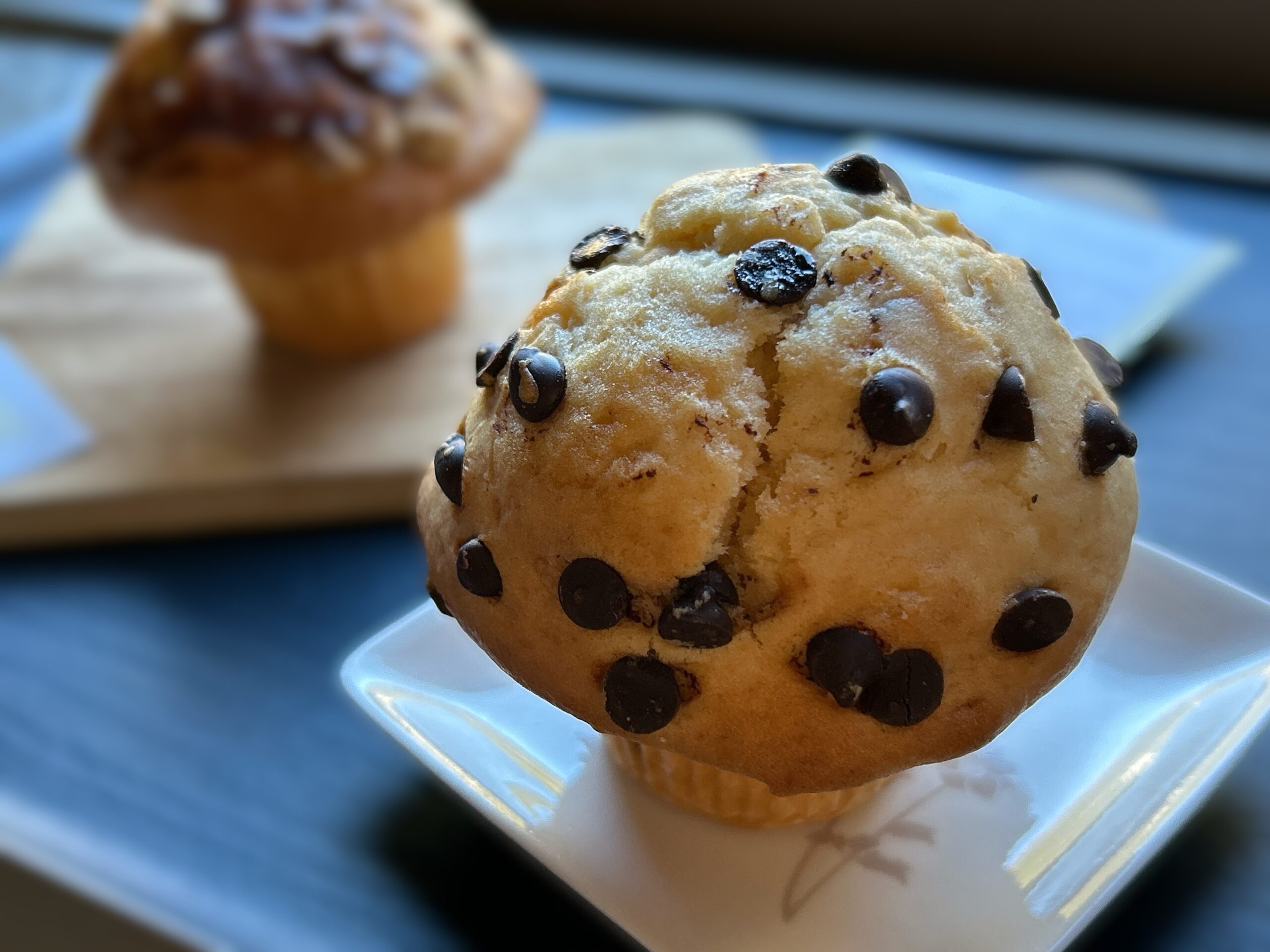 マフィンの種類は日替わり。お持ちくださったのは プレーン、ブルーベリークリームチーズ、チョコチップ、キャラメルナッツクランブルの4種類で、どれも残り1~3個くらいでした。