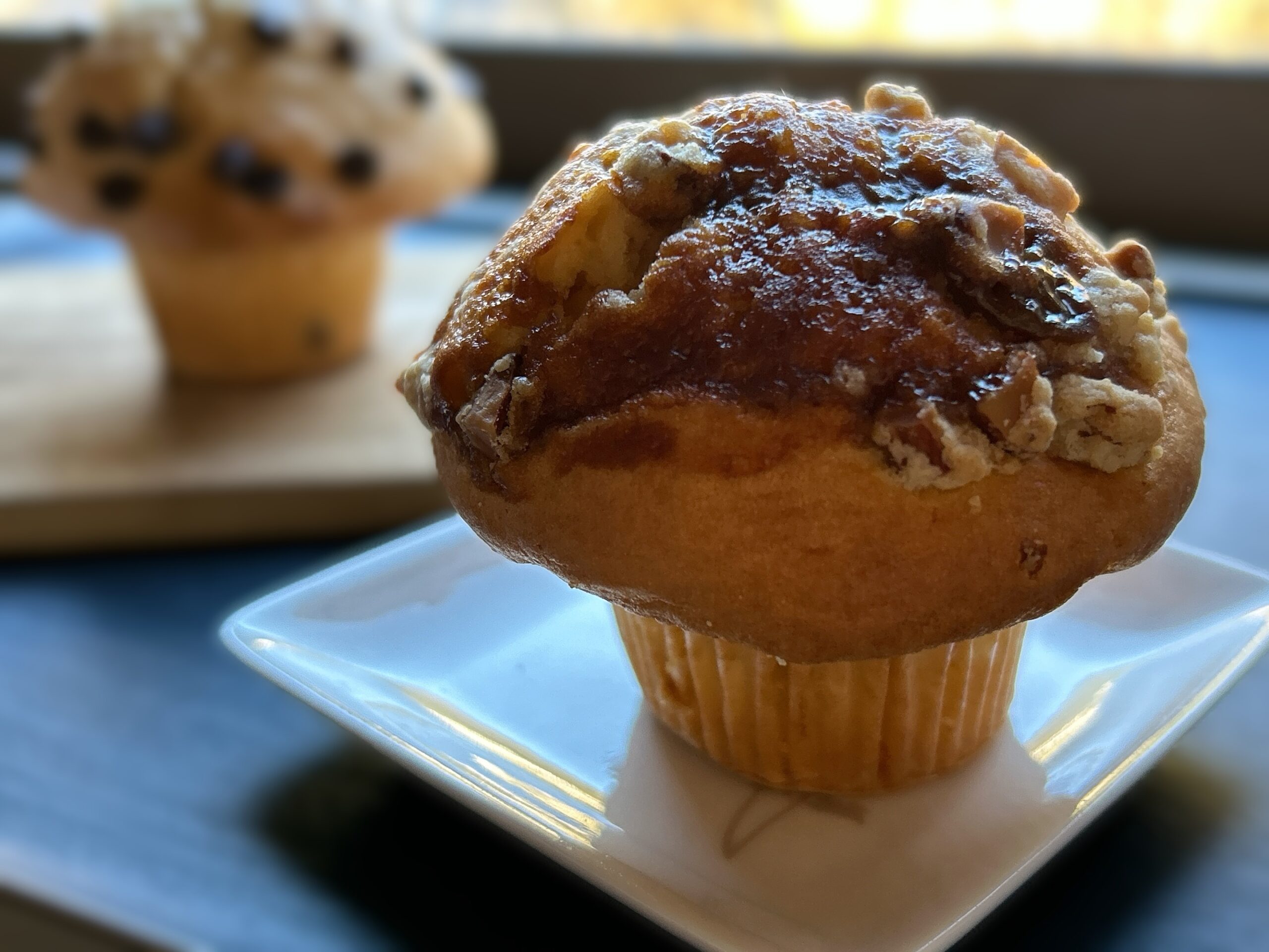 人気No.1のキャラメルナッツクランブルは、ふわっとしたマフィンのなかに、トッピングされたアーモンド入りクランブルのザクザクとした食感がおもしろいです。