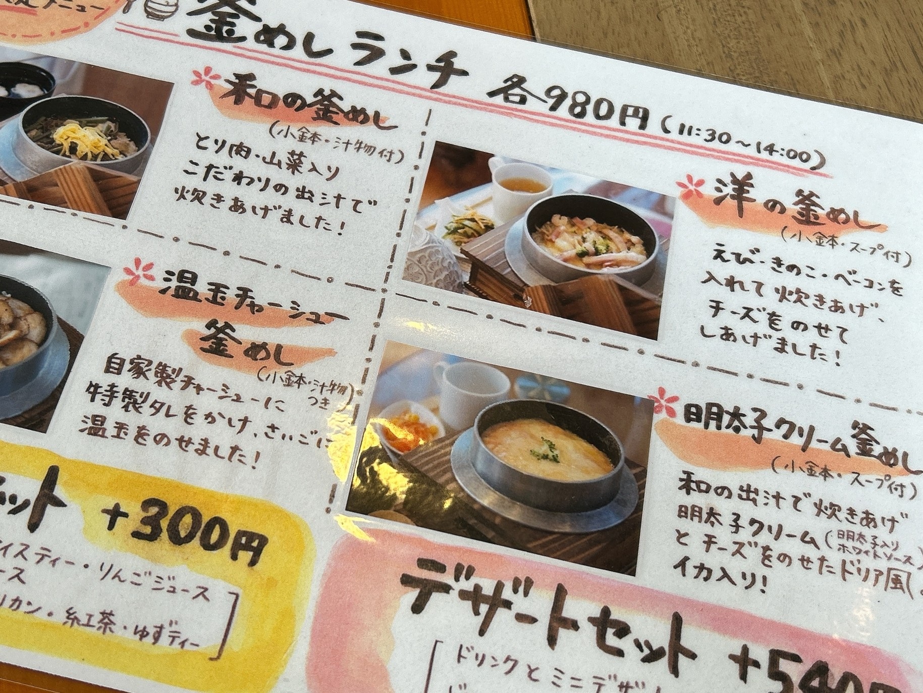 伺うまでは“釜めし=和テイスト”で、具材が選べる感じなのかなと想像していたので、メニューを拝見してびっくり!釜めしにチーズやチャーシューってどんな感じなのか…想像するだけで楽しくなります
