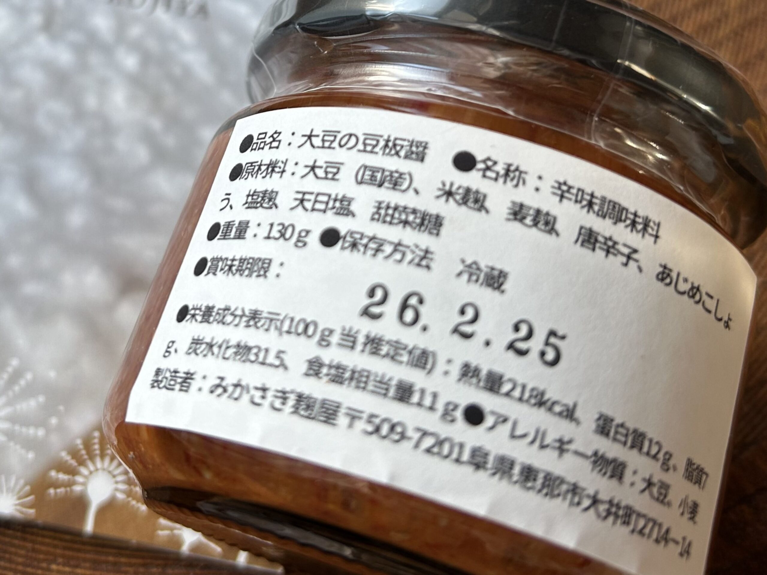 原材料を拝見すると、主原料はそら豆ではなく大豆。大豆から作られている豆板醤はあまり見かけたことがなく、ちょっと驚きました。