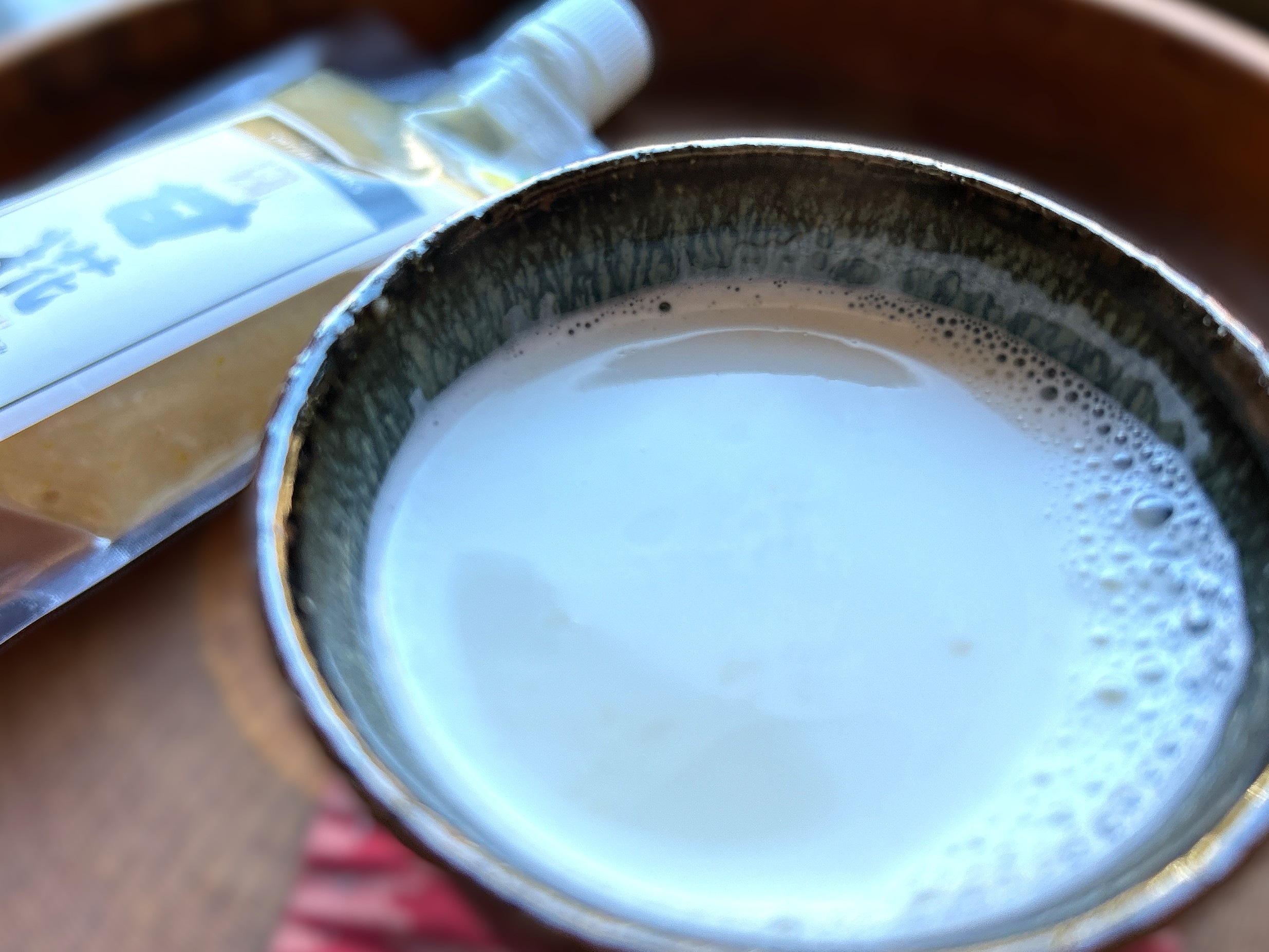牛乳との相性もいいとのことだったので、牛乳200ccに大さじ1程度加え、温めていただきました。