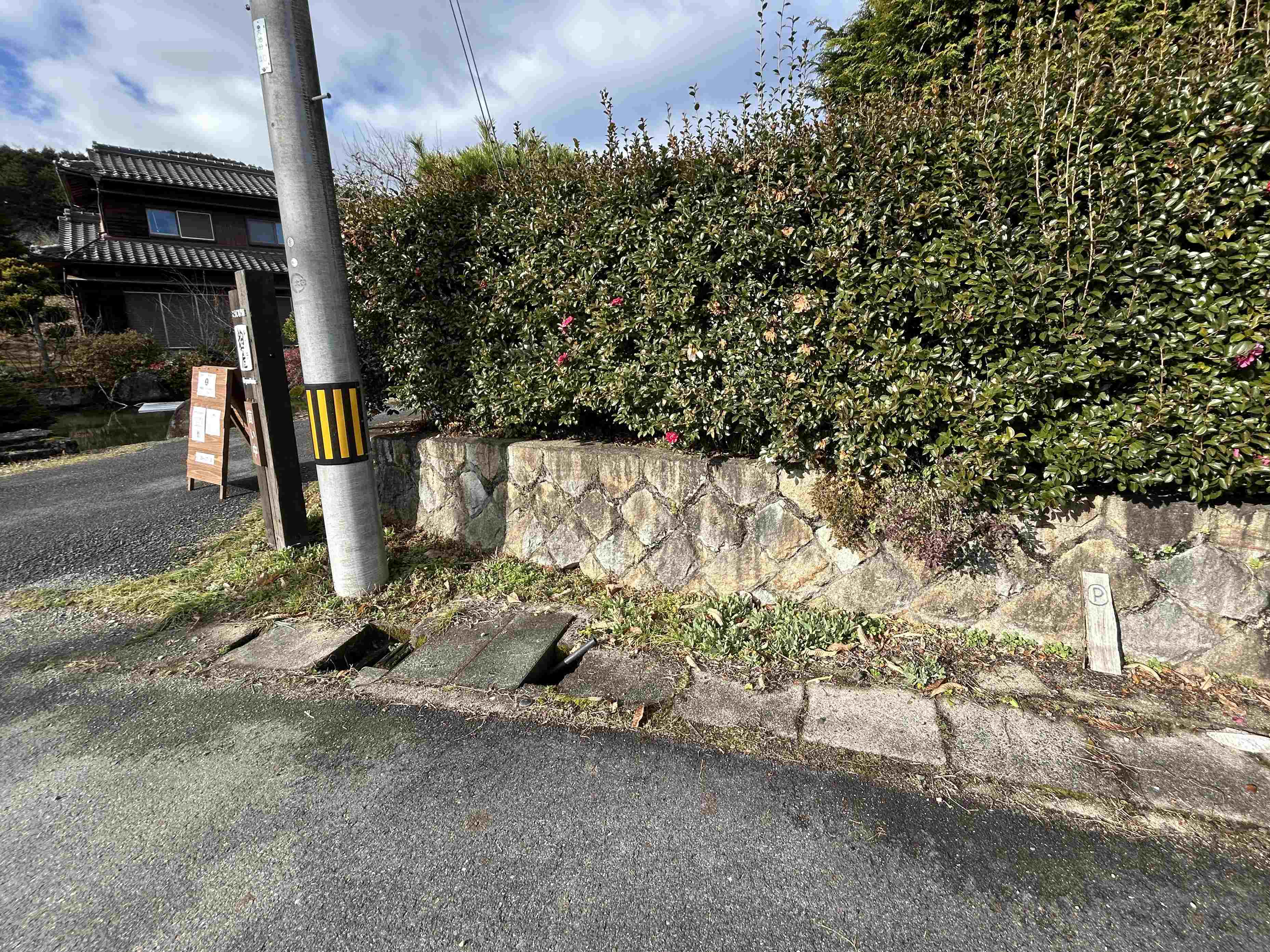 ラインなどは引かれていませんが“P”のマークが書かれた木札があります。