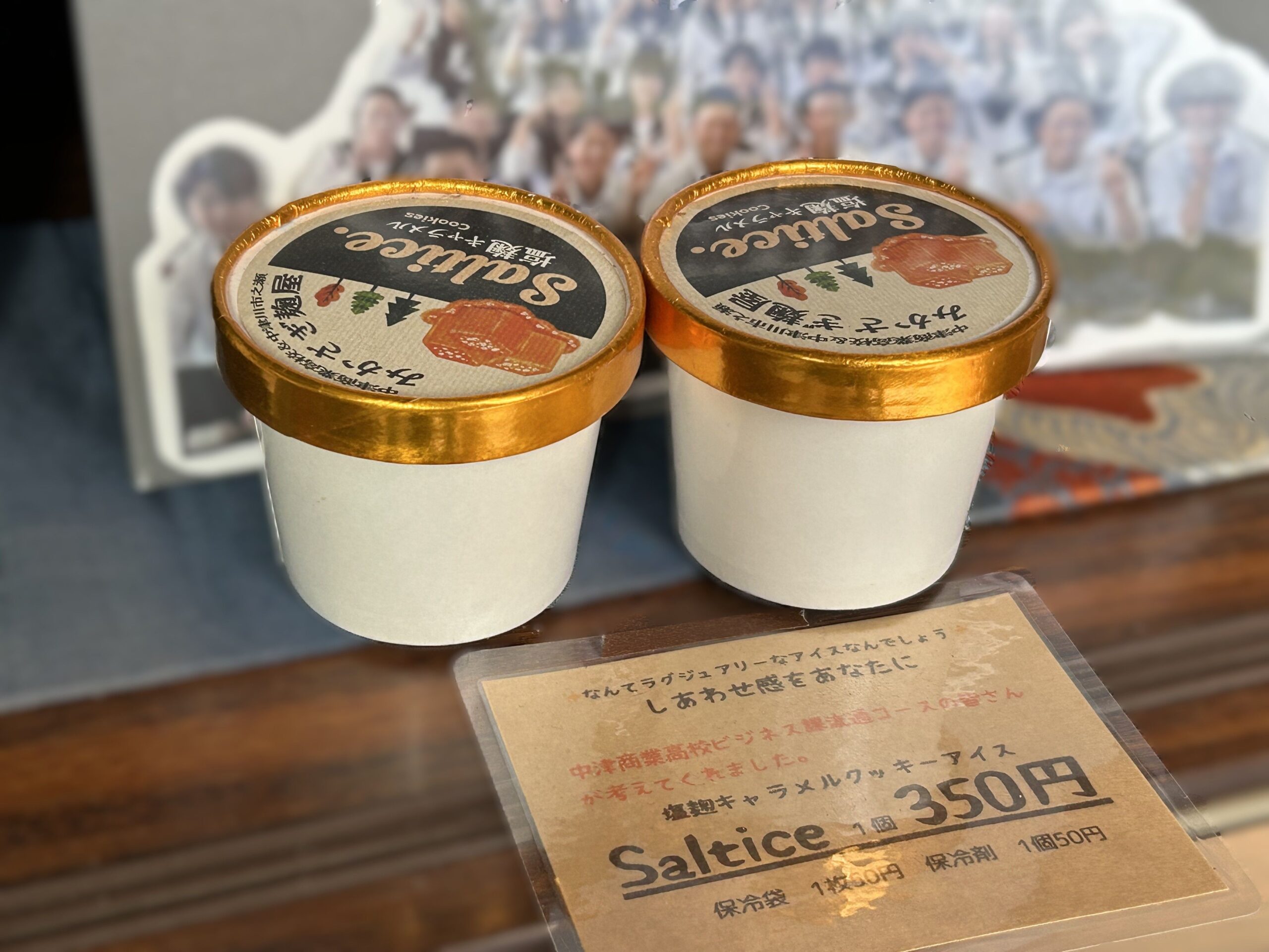 中津川市にある岐阜県立中津商業高等学校、ビジネス科流通コースでは、地元食材を使用したアイスクリームを生徒さんのアイデアから商品化し、販売されるという授業を毎年されているそうです。2024年はみかさぎ麹屋さんの塩麹を使用したこちら。