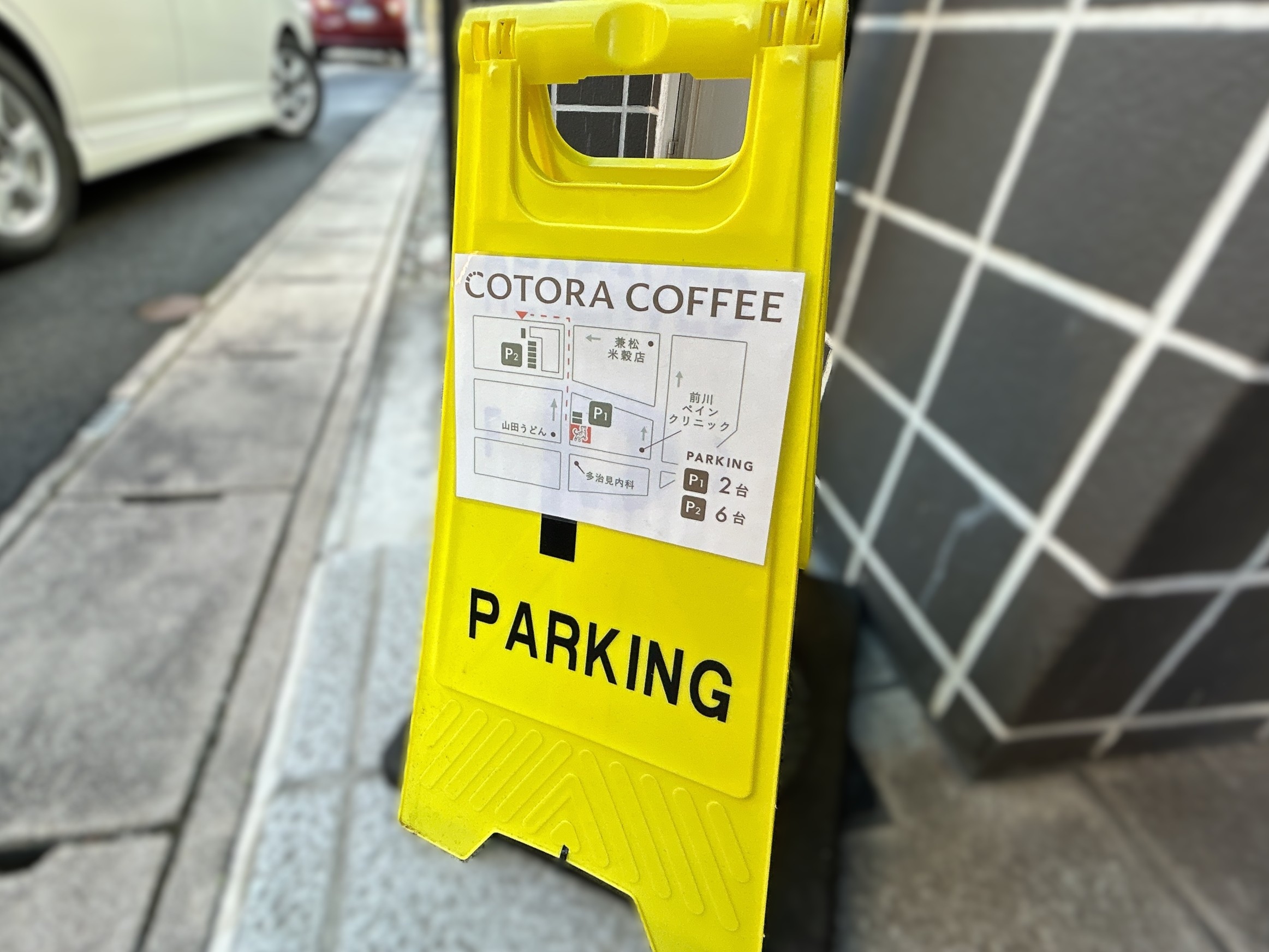 第2駐車場を説明される際、店舗からの地図や道順の説明が一般的ですが、COTORA COFFEEさんのHPでは、それに加えて駐車場の住所をお知らせくださっています。