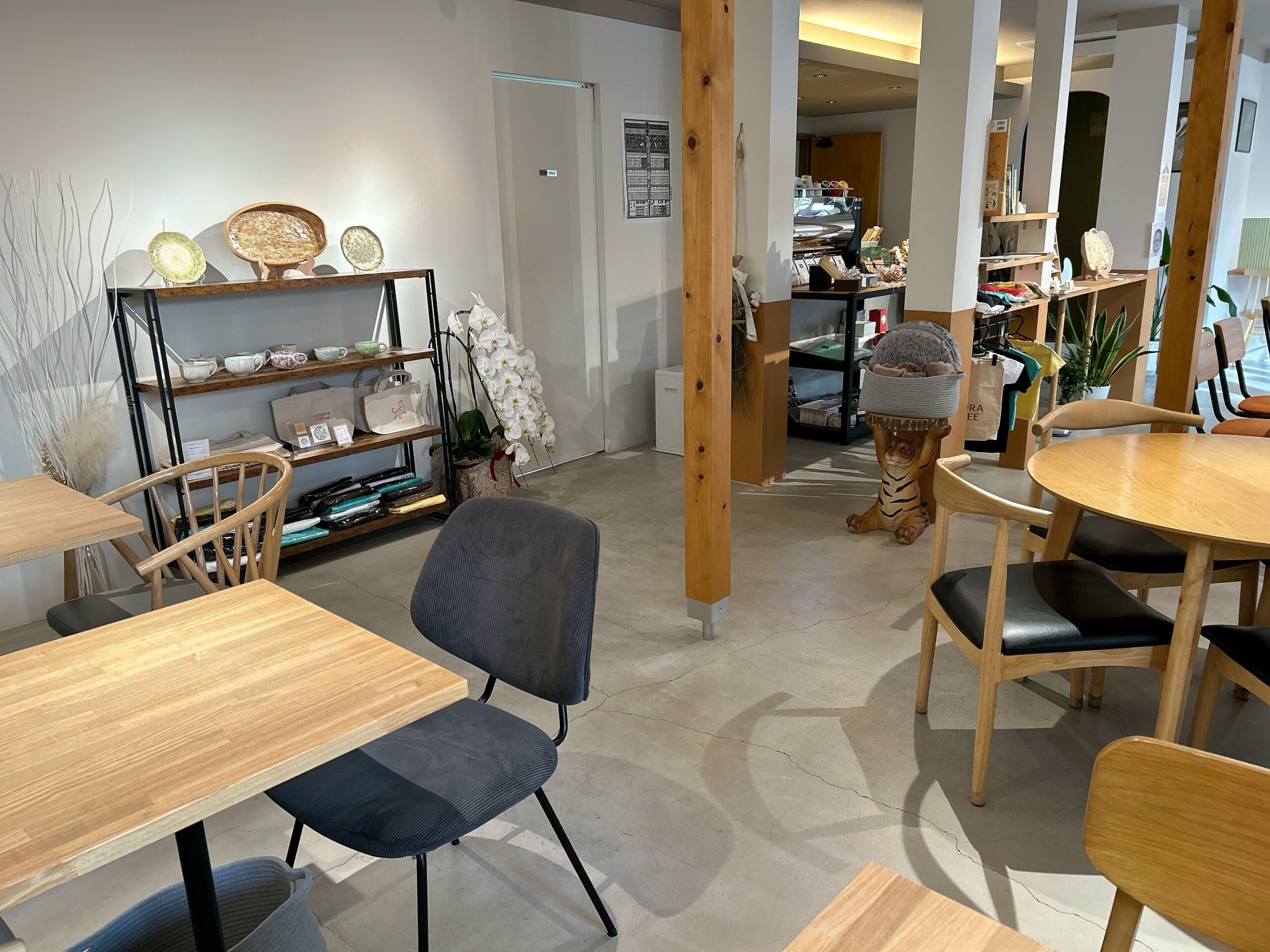 レジカウンター前に並べられているCOTORA COFFEEさんのロゴがデザインされたオリジナルグッズは、シンプルなのにどこか目をひき、つい手に取りたくなる魅力的なものばかり。