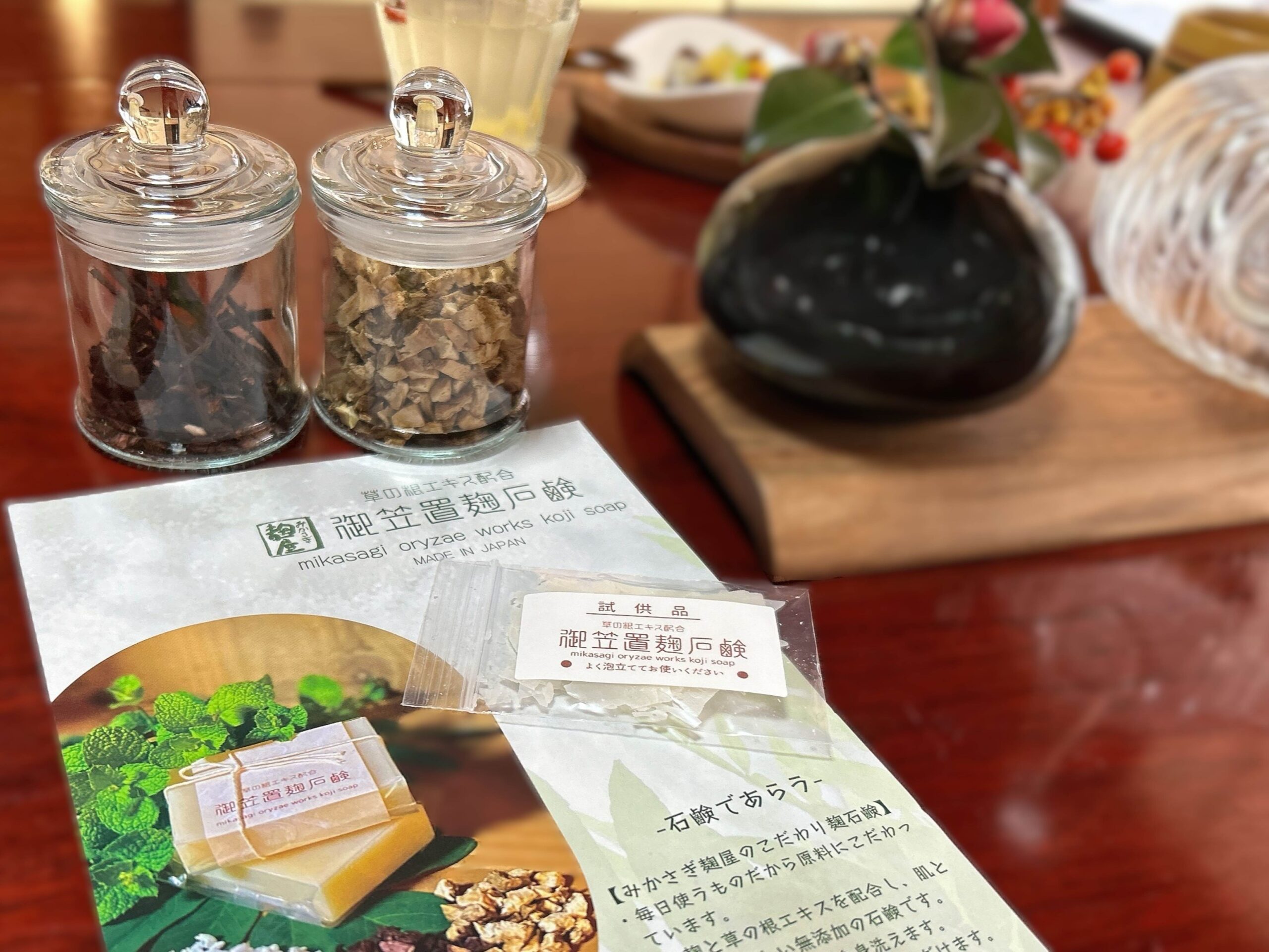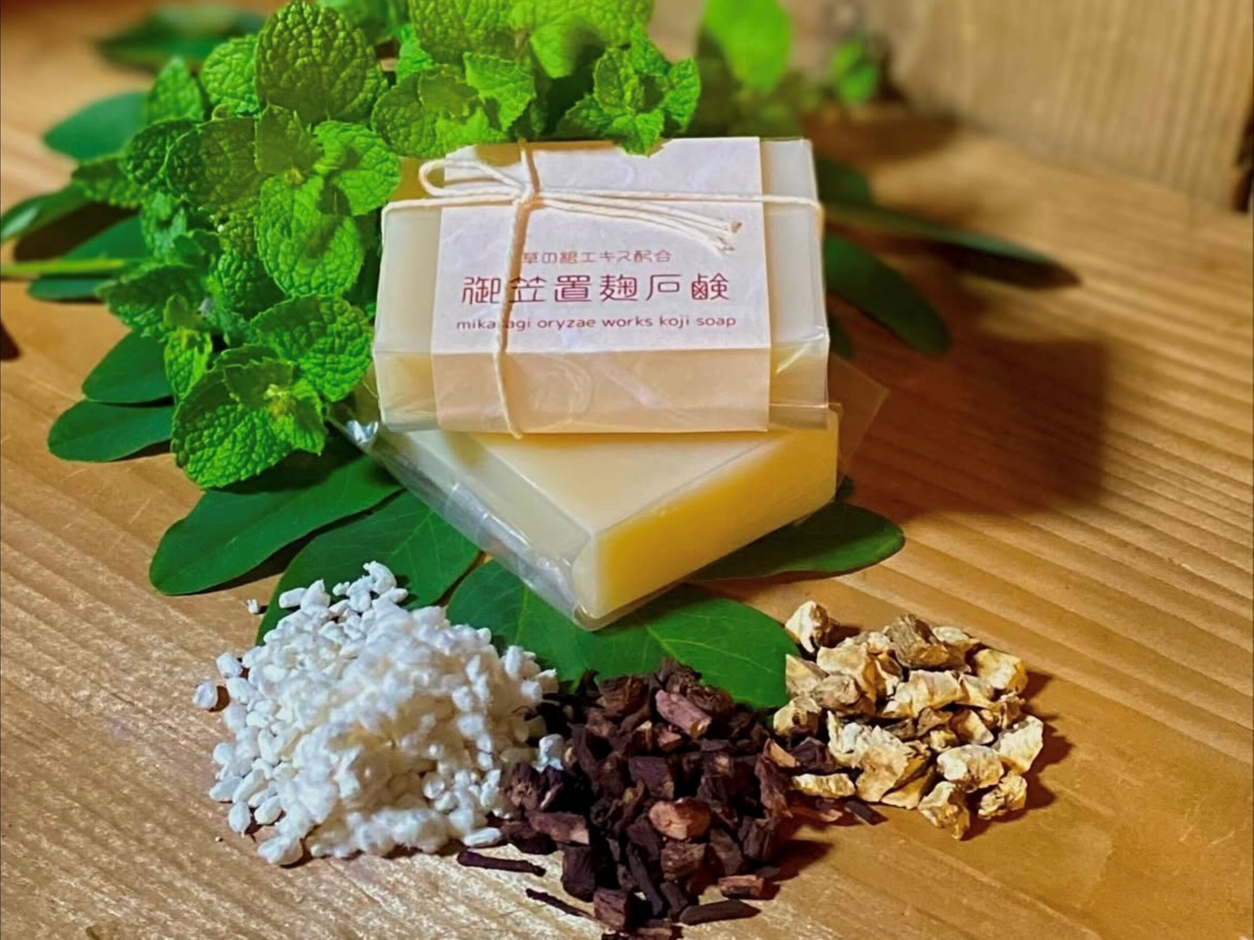 石鹼って毎日使うものだから、原料にはこだわりたくて、米麹と草の根エキスを配合した肌と環境にやさしい無添加の石鹸を…と試行錯誤。完成まで数年かかりましたが、納得のいく石鹸ができたと思っています。