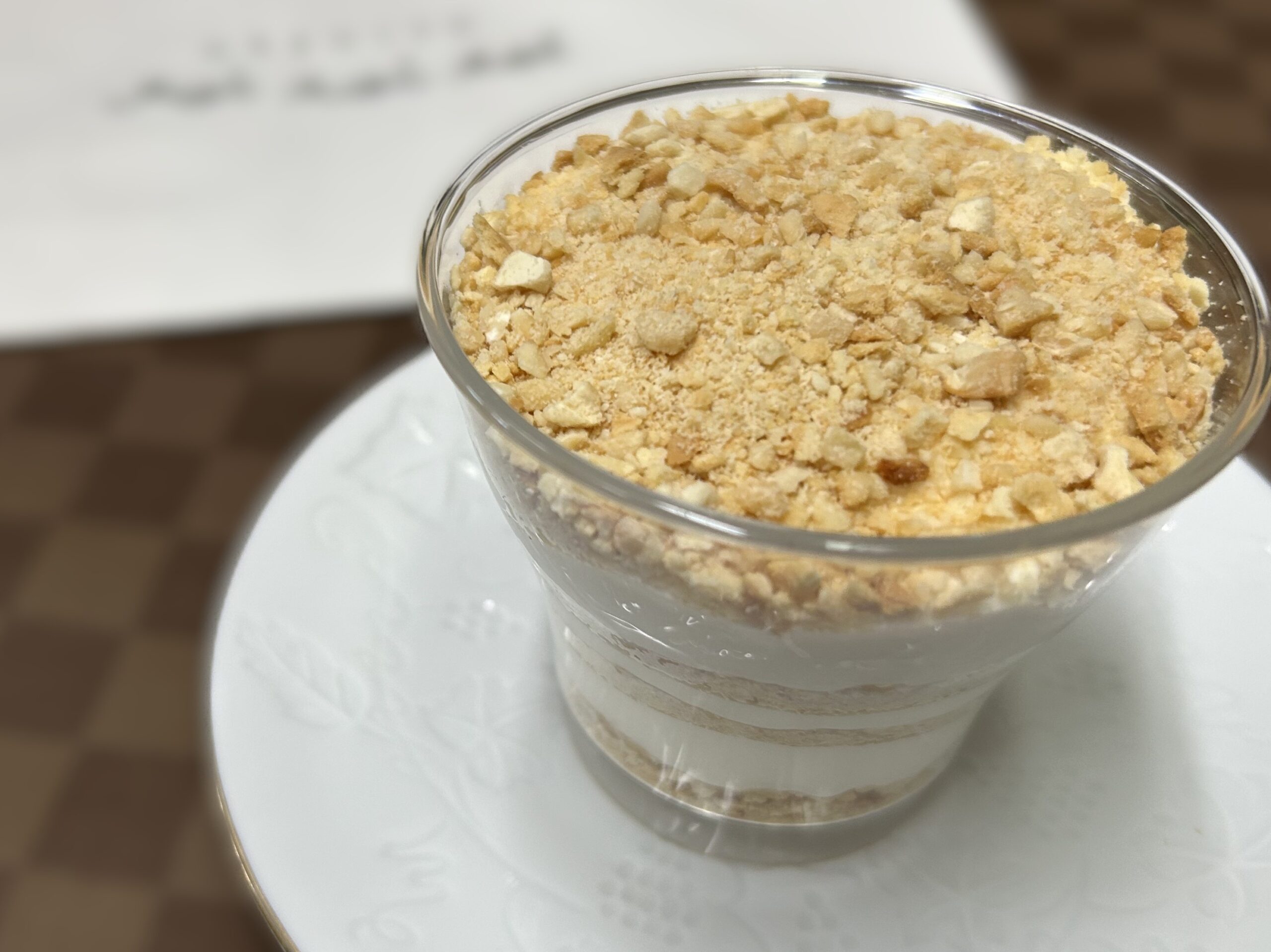 練乳クリームは、濃厚なのに想像していたよりも軽めで やさしい味カシューナッツやビスケットの風味と食感がアクセントになっていて、味も食感も楽しめます。ひとくち、またひとくち…と、気づいたら完食していました。