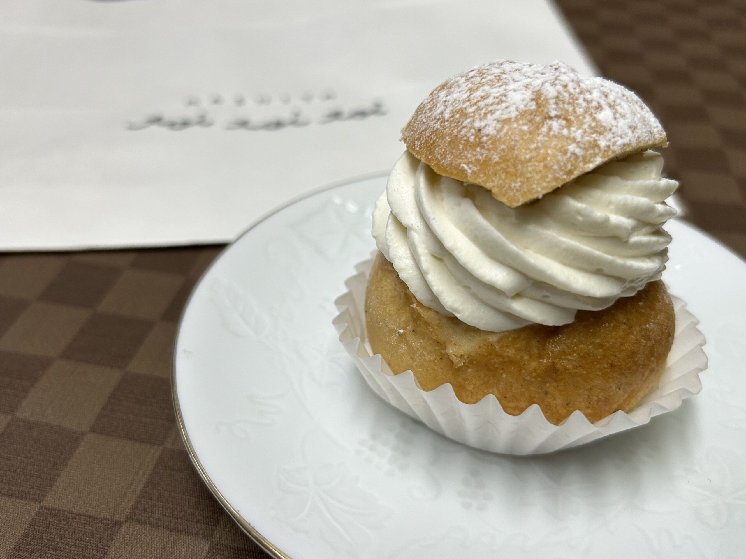 こちらはスウェーデンの“春を告げる”郷土菓子だそうです。見た目はシュークリームのようですが、シューではなくてパン