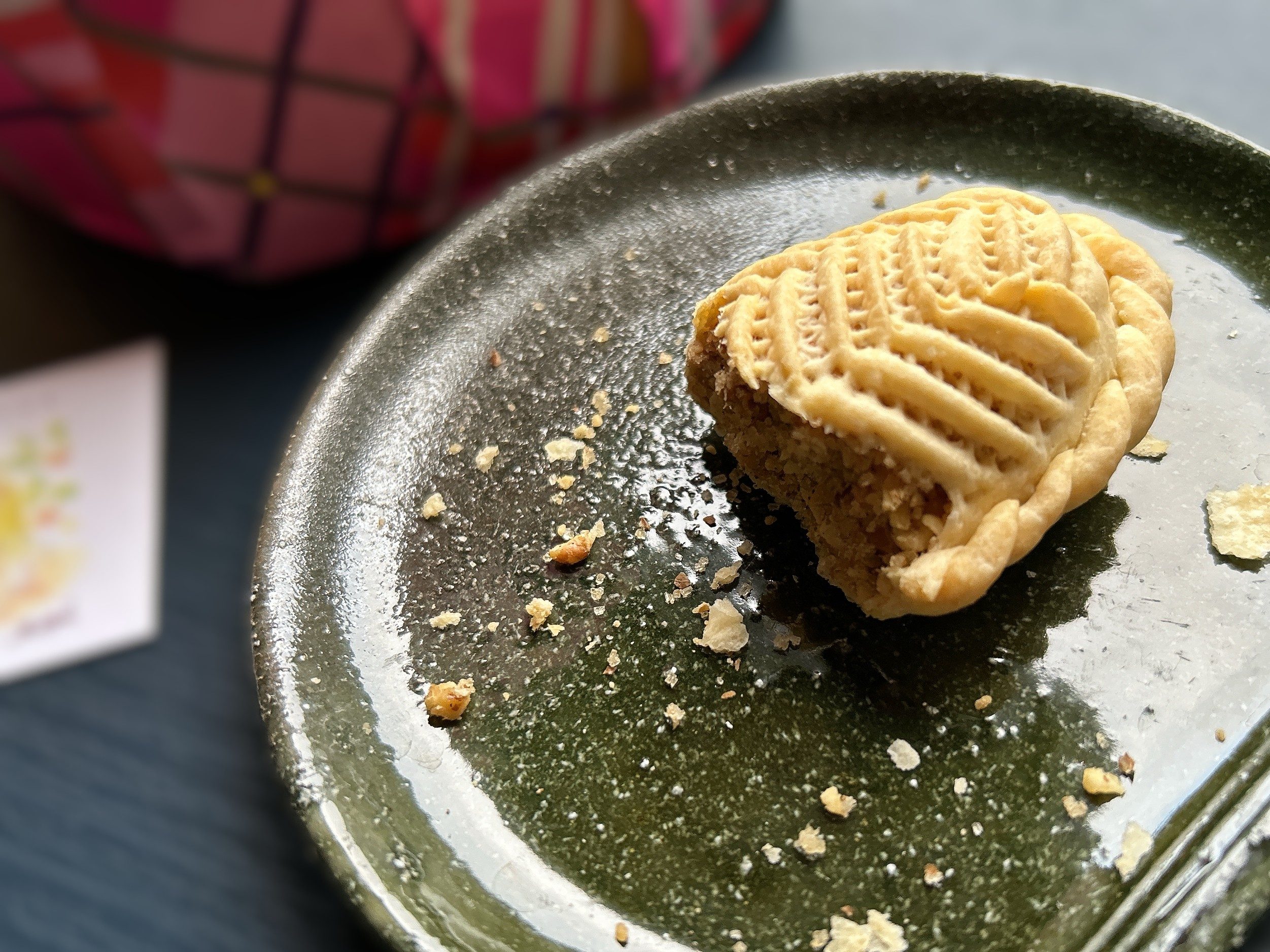 いただいてみると、まずはカルダモンの風味が口いっぱいに広がります。もちろん くるみも負けてはいませんザクザクとした食感で、どちらかと言えば甘さは強めに感じました