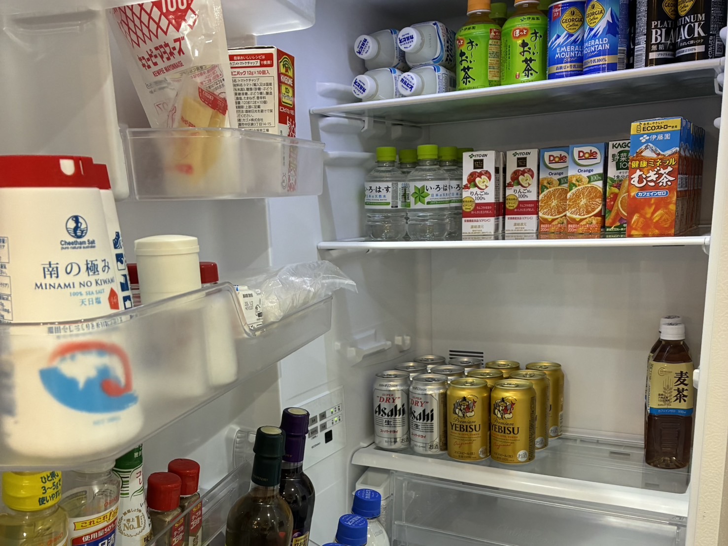 さらに驚いたのが、宿泊体験の「おもてなしレベル」の高さです。正直、簡易的な体験をイメージしていましたが、いい意味で期待を裏切られました。冷蔵庫の中にはアルコール・ノンアルコールともにドリンクが豊富に用意されており、お菓子やカップラーメンも自由に食べてOK。まるで旅館のような充実ぶりで、「ここまで用意されているのか」と驚きました。